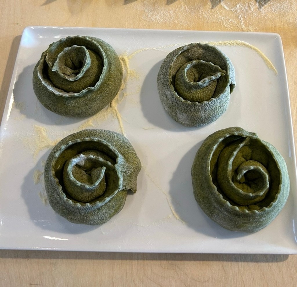 Un ottimo primo piatto un po’ laborioso ma di grande bontà e tanta soddisfazione, una spirale che contiene un ripieno goloso, la farcitura potete deciderla voi, anche la pasta si può fare classica senza spinaci ma così sono veramente golosi, ogni girella è una porzione, con la dose che vi ho dato ho preparato 4 girelle