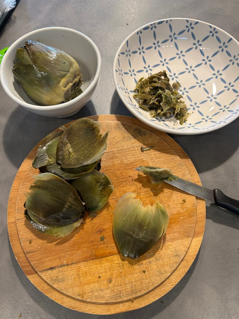 Con un coltello pulisco tutte le foglie e il cuore del carciofo