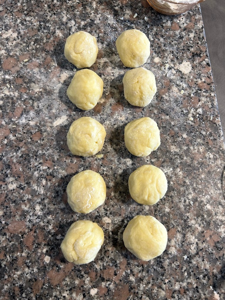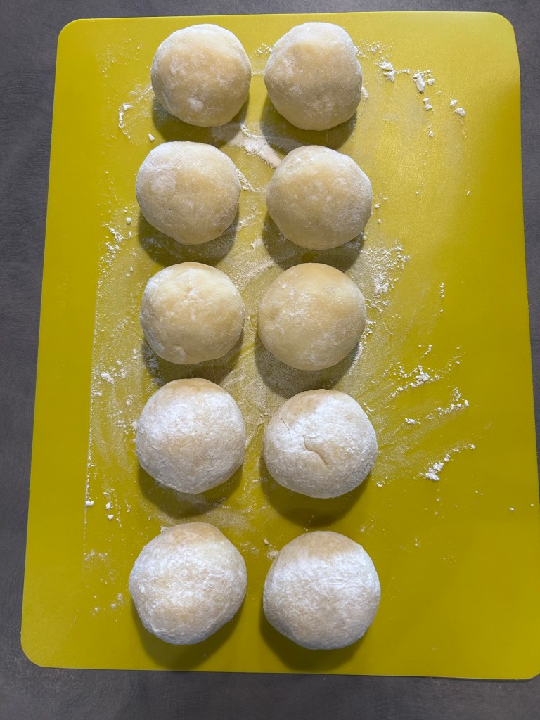 Ho pesato l’impasto e suddiviso in 10 pezzi, poi sta a voi decidere se li volete più piccoli