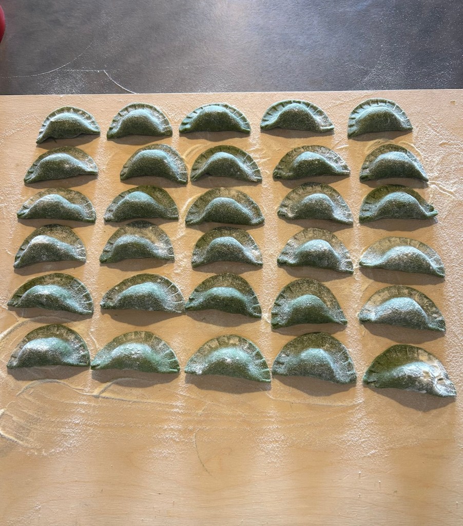 Mezze lune ripiene di ricotta, mortadella e pistacchi, un impasto veramente versatile e profumatissimo, queste mezzelune le potete anche congelare, si possono preparare con vari condimenti o semplicemente con burro e salvia, un piatto ricco di sicuro successo, provate ne vale la pena, successo assicurato
