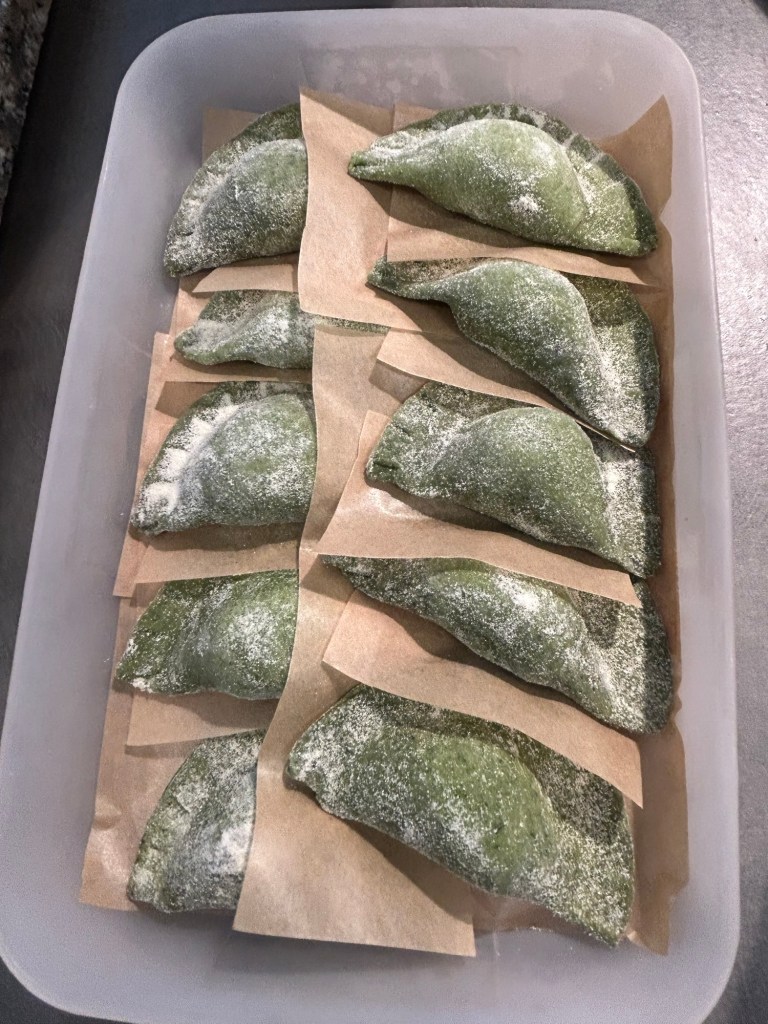 Se li volete potete congelarli, io calcolo 5 mezze lune a porzioni, le separo con carta forno per evitare che si attacchino, li cuocio direttamente congelati, calcolate la cottura dal momento del bollore