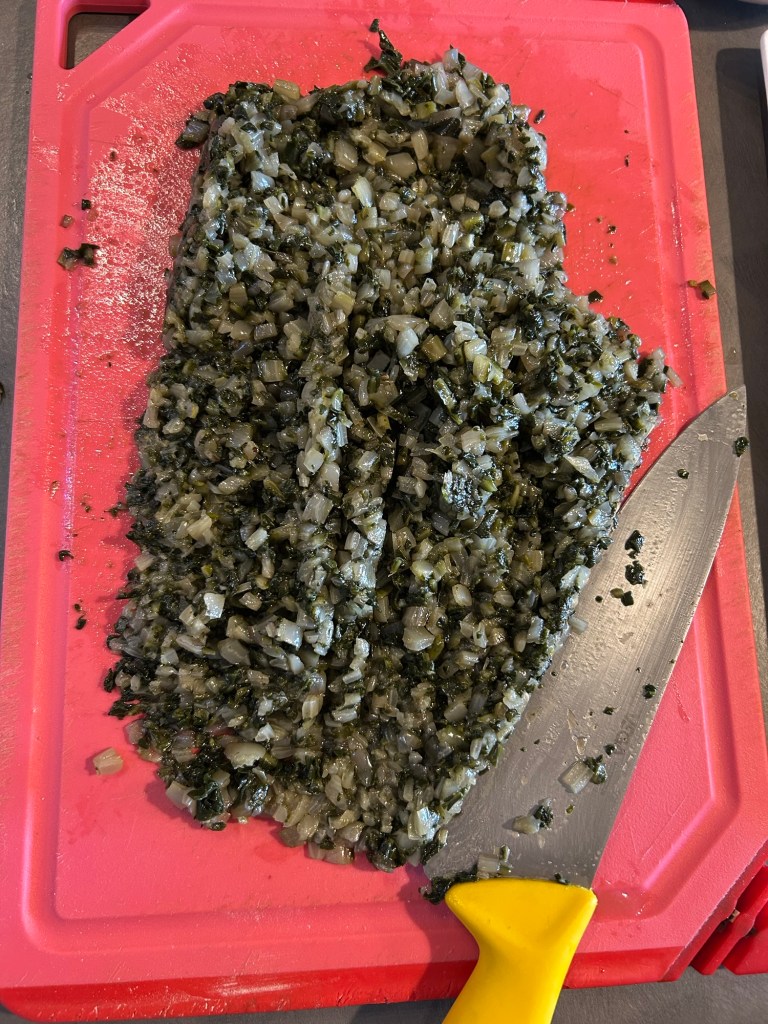 Le trasferisco sul tagliere e le trito a coltello
