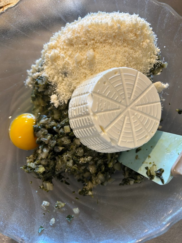 Le metto in una ciotola, aggiungo la ricotta ben scolata, l’uovo e il grana macinato
