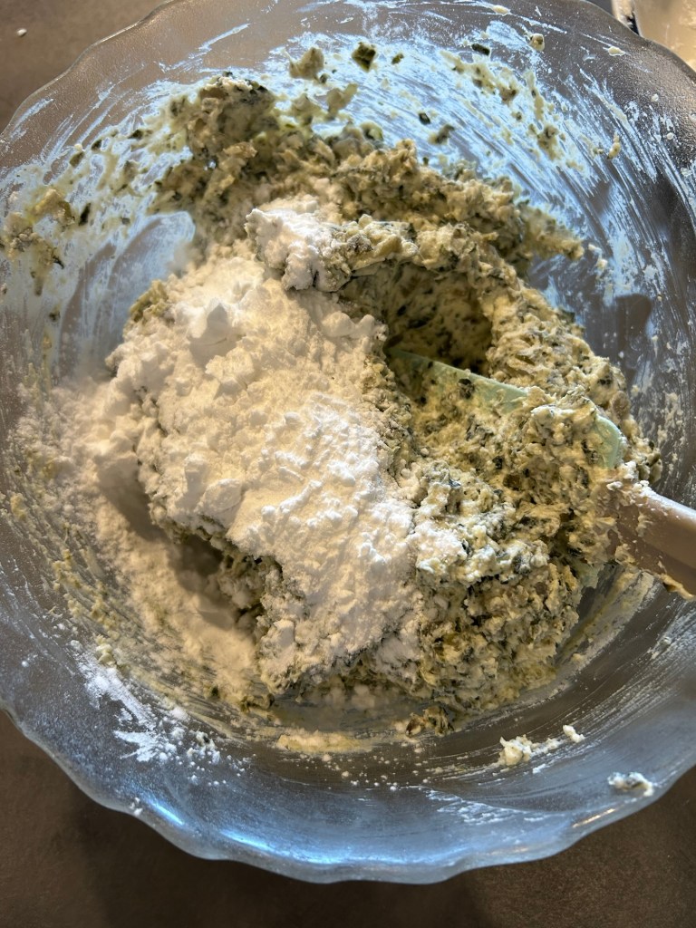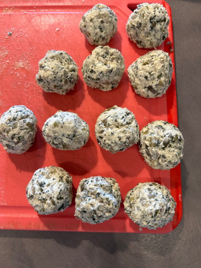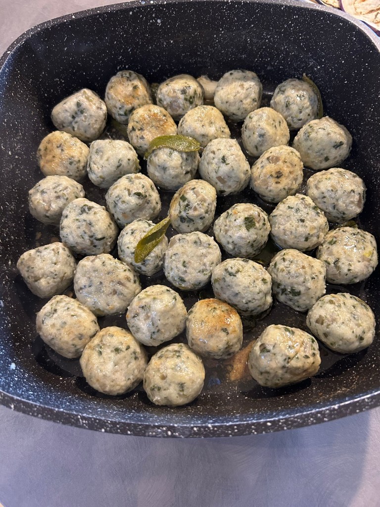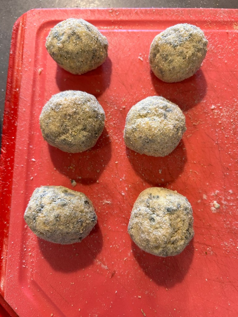 Deve risultare un impasto compatto ma un po’ appiccicoso, formo delle palline grandi come una noce