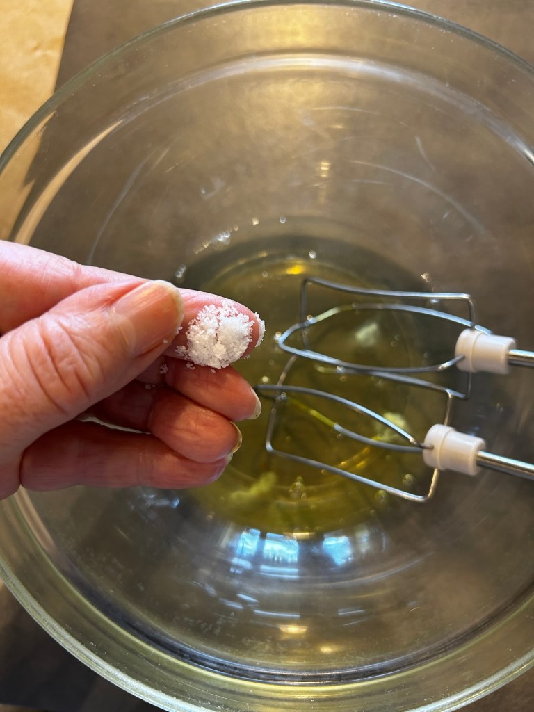 Nella ciotola degli albumi aggiungo un pizzico di sale