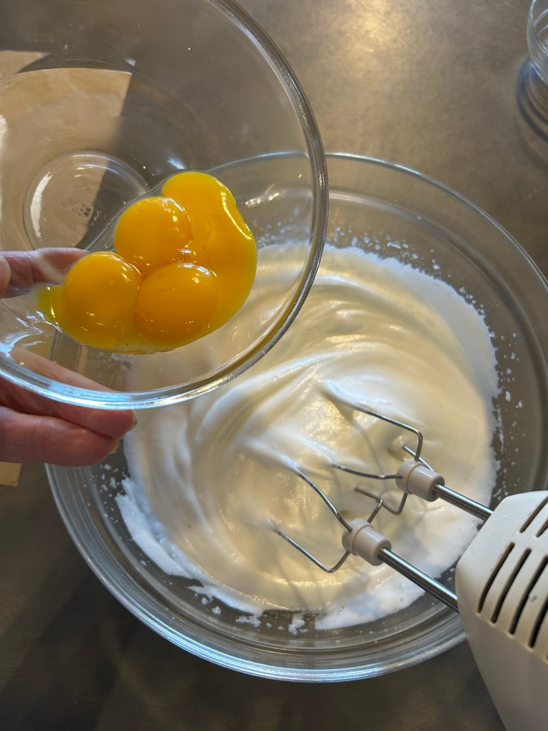Aggiungo i tuorli uno per volta quando gli albumi sono ben montati