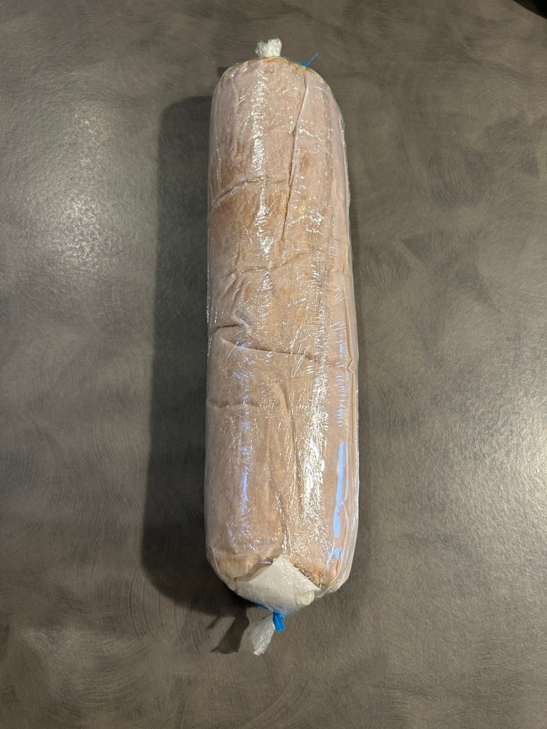 Avvolgo nella carta forno poi nella pellicola, sigillo a caramella e metto in frigorifero per qualche ora