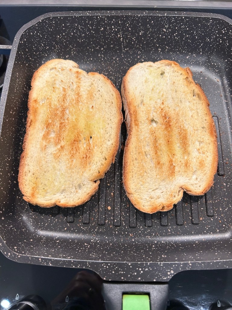 Prima di servire aggiungo la farcia sulle fette, non fatelo in anticipo altrimenti il pane diventa molliccio, termino con un filo di olio