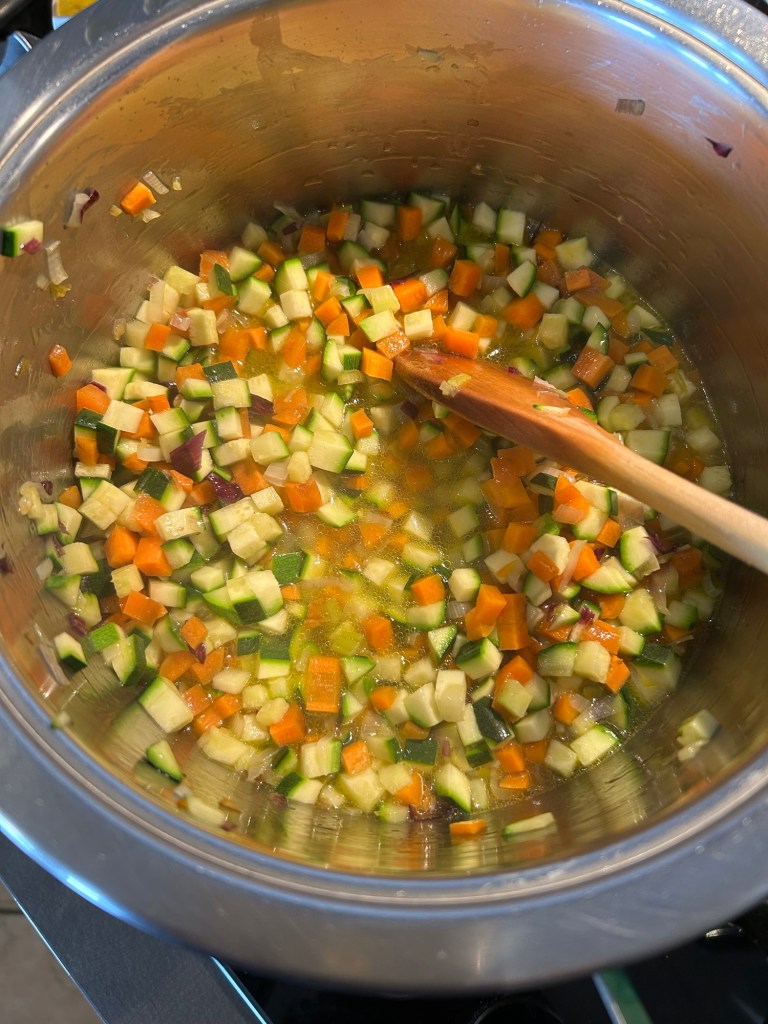 Aggiungo le verdure pulite lavate e tagliate in piccoli cubetti
