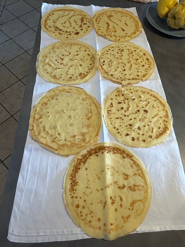 Le preparo tutte, io ne ho ottenute 7 perché mi piacciono sottili altrimenti 6 leggermente più spesse