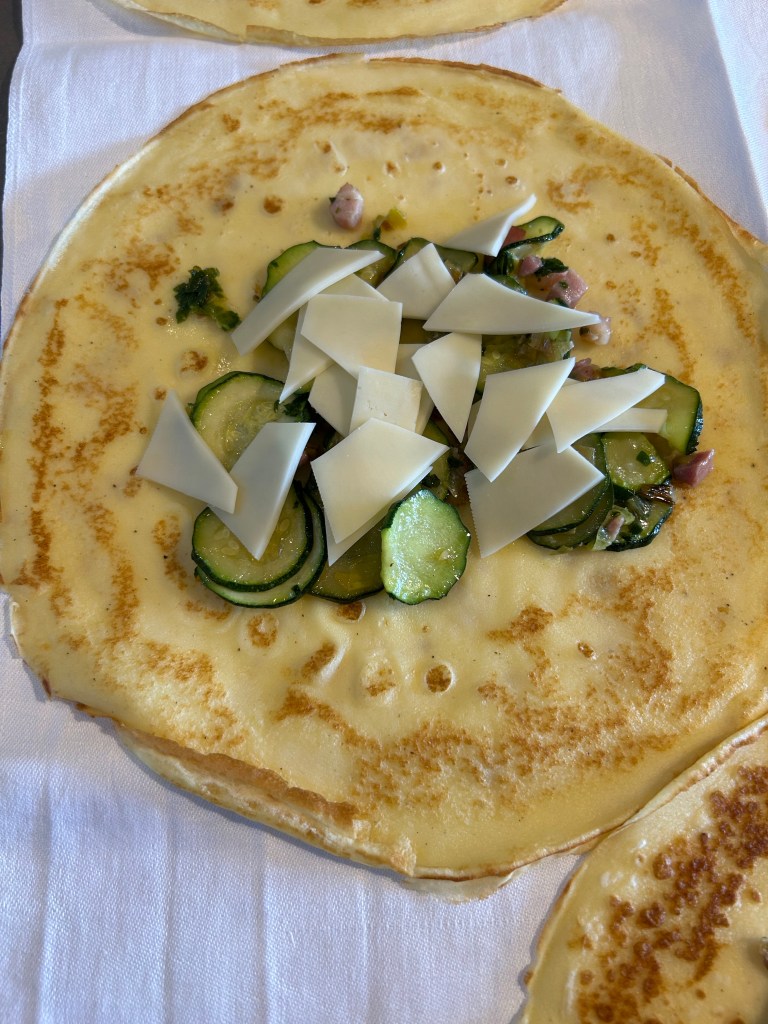 Ho deciso di preparare queste crespelle con gli ingredienti che avevo in frigorifero, senza troppi sbatti, non ho messo la besciamella perché le volevo più leggere ma se volete la potete aggiungerla in superficie, se le volete vegetariane potete omettere la pancetta che però dà una marcia in più