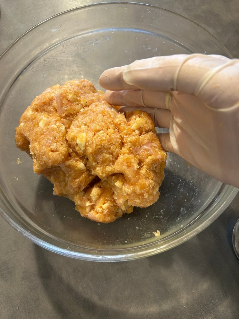 Inizio ad impastare, devo ottenere un impasto compatto ma morbido e aggiungo mezzo spicchio di aglio grattugiato