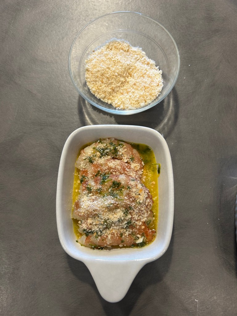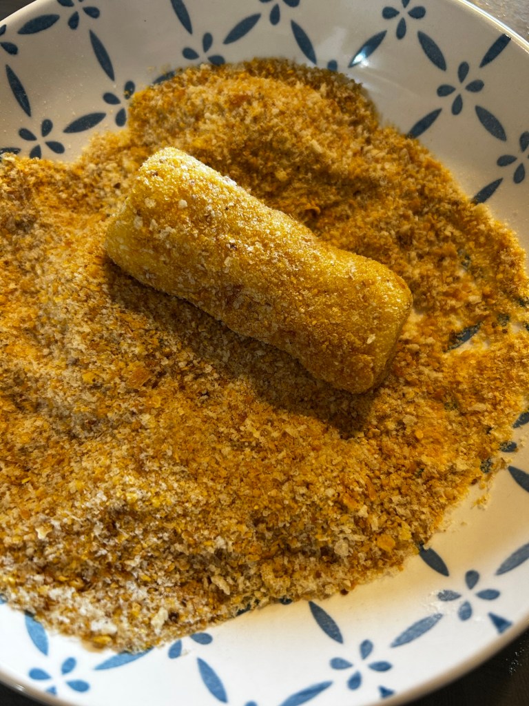Passo nel pane grattugiato, io ho tritato anche dei corn flakes