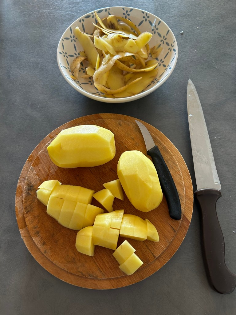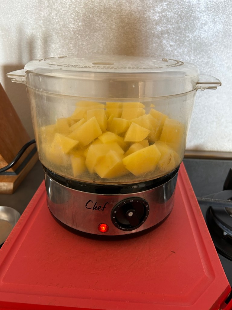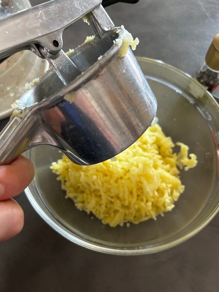 Quando sono tenere le schiaccio con lo schiacciapatate e le lascio raffreddare