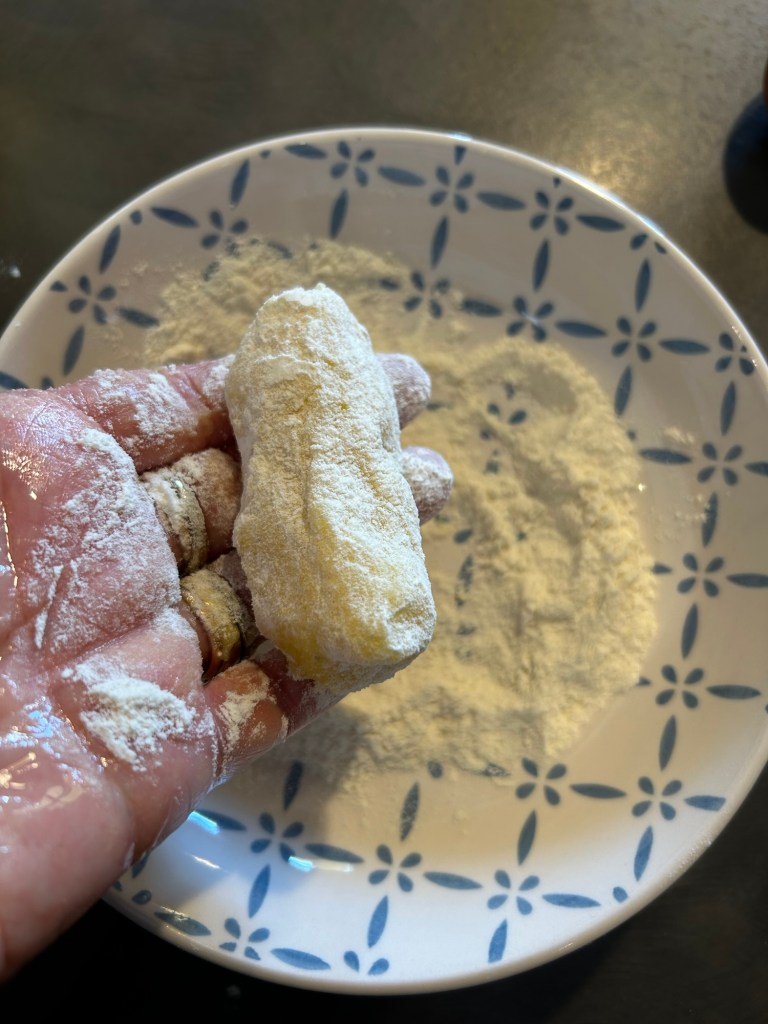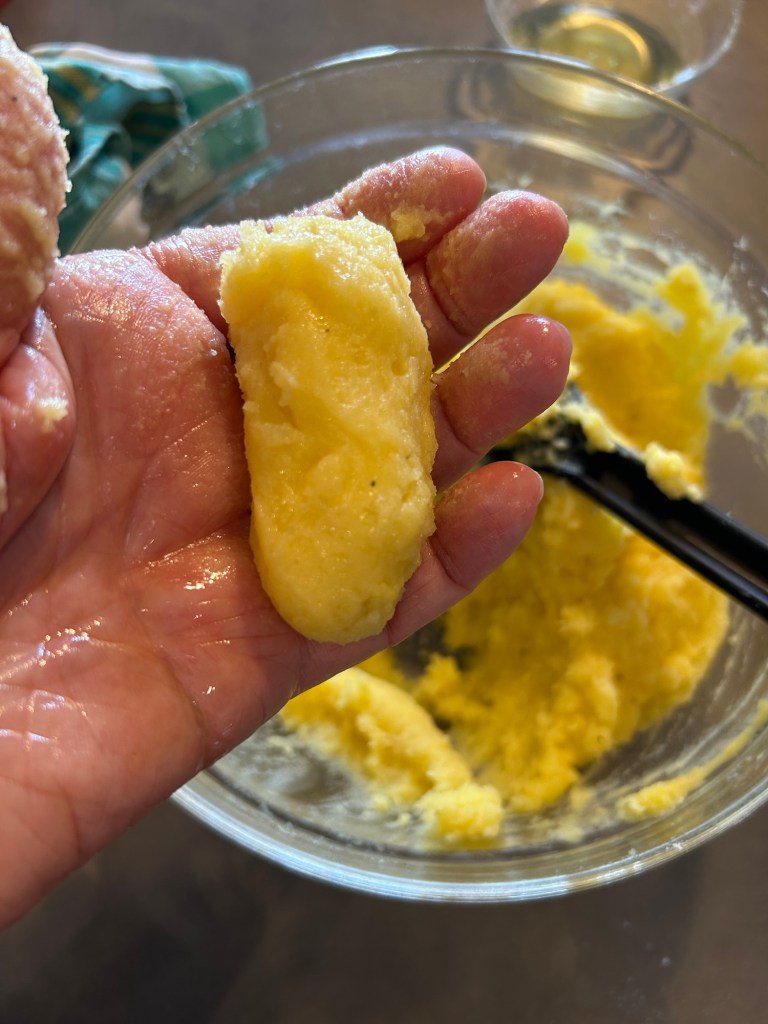 Mi ungo le mani e preparo le crocchette dando la classica forma allungato