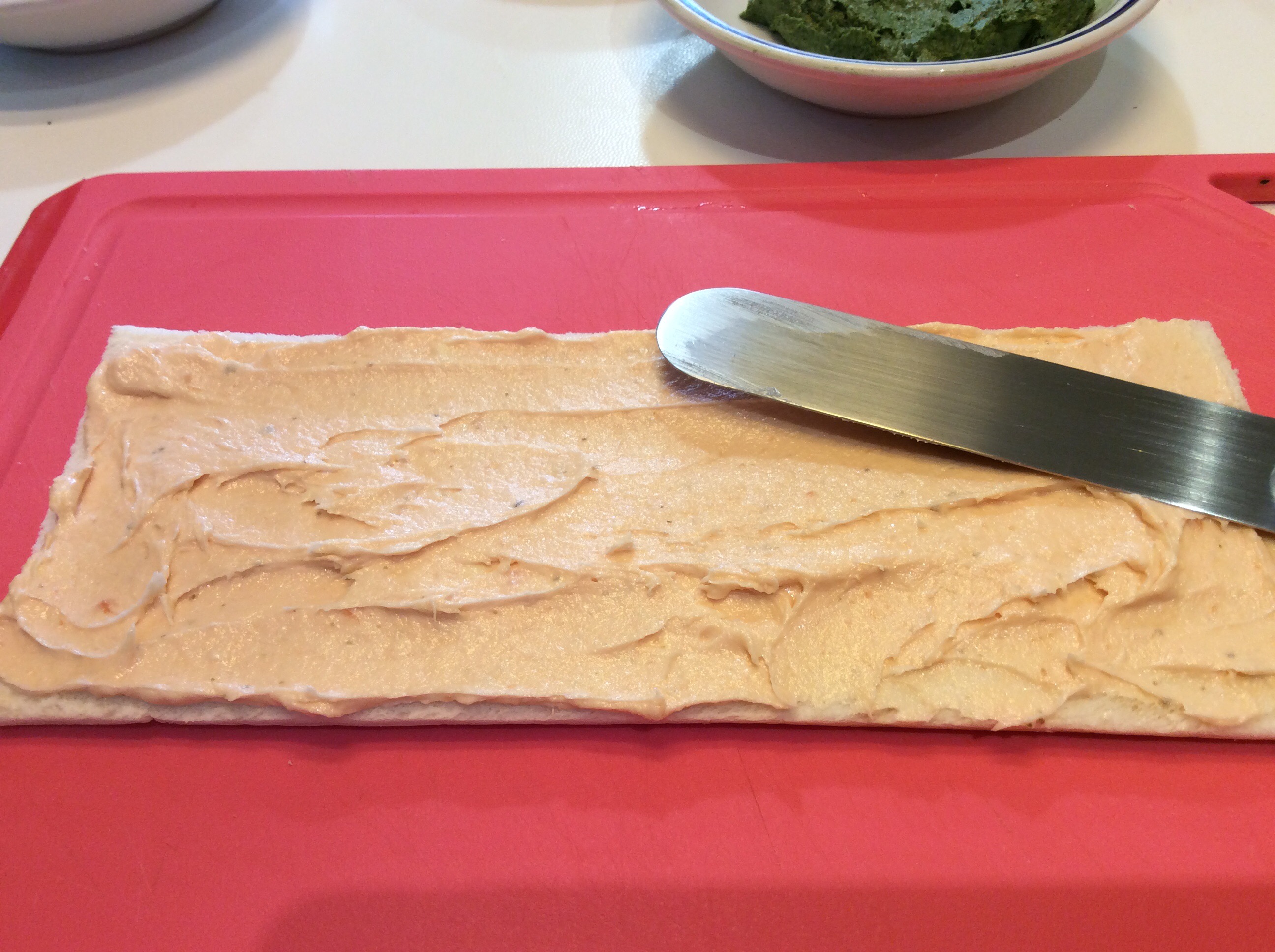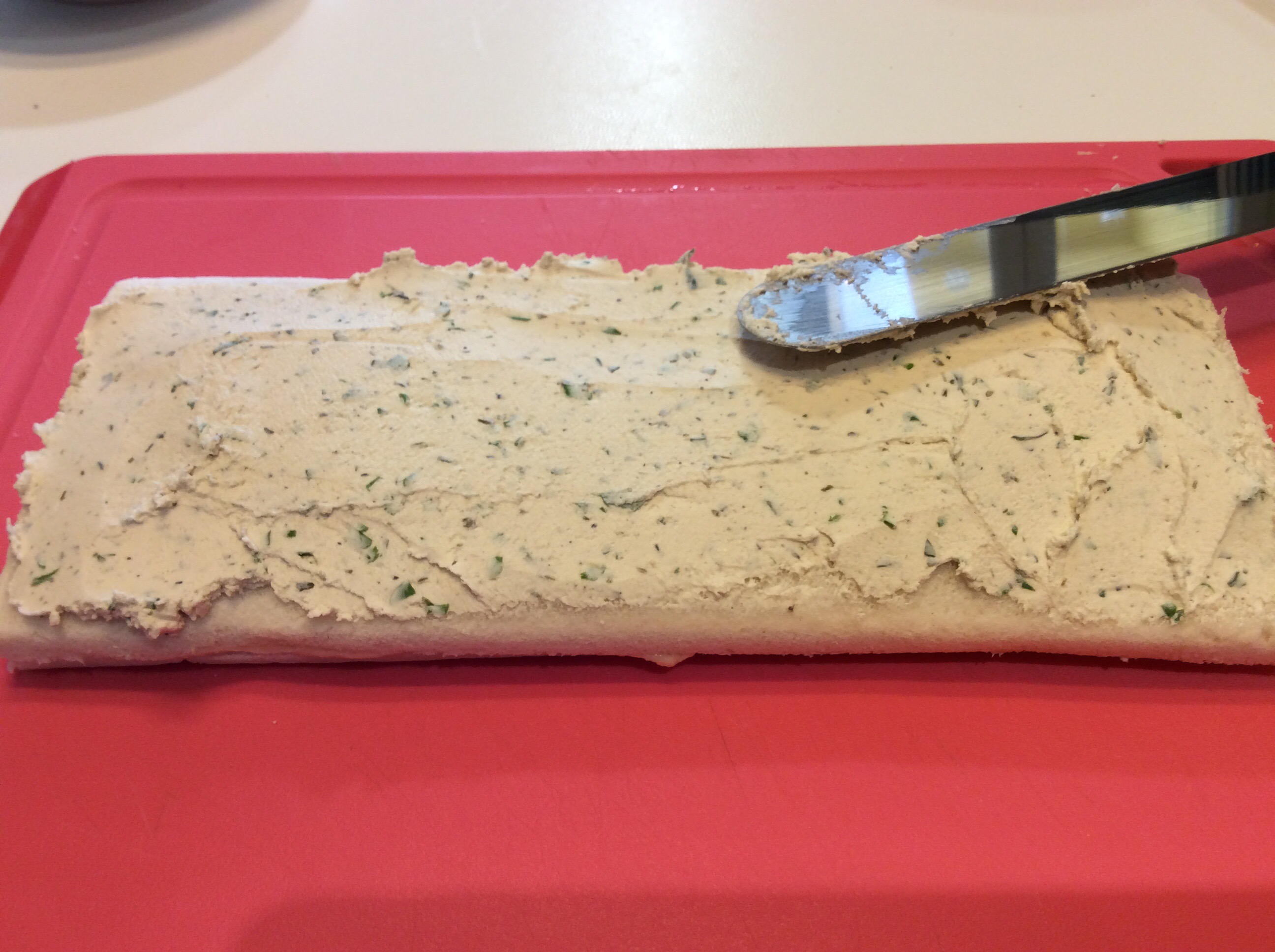 Ho distribuito uniformemente l’emulsione coprendo bene le fettine, io le ho spennellate con un pennello da cucina