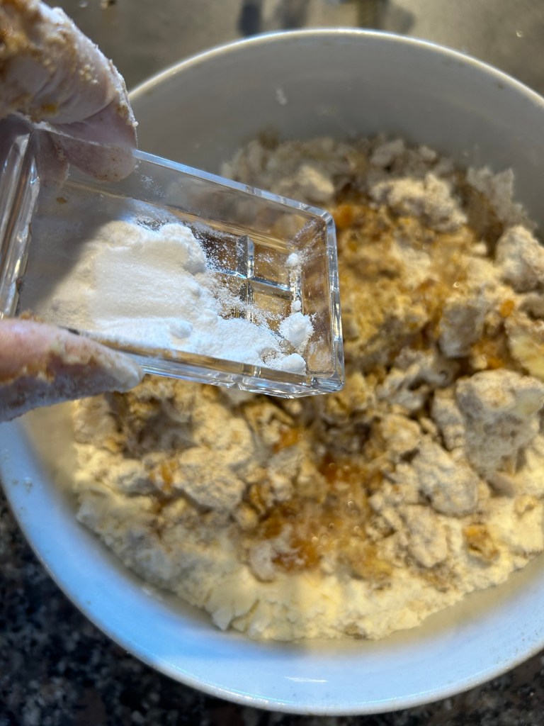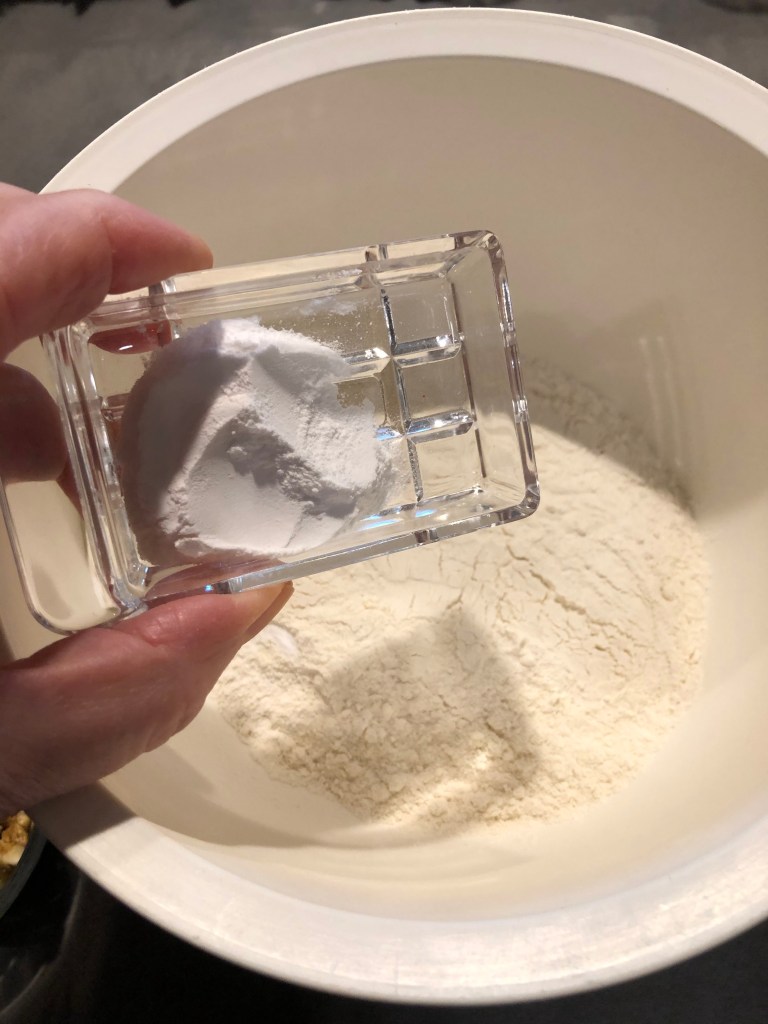 5 GR DI LIEVITO E UN PIZZICO DI BICARBONATO, (OPPURE 3 GR DI AMMONIACA PER DOLCI)