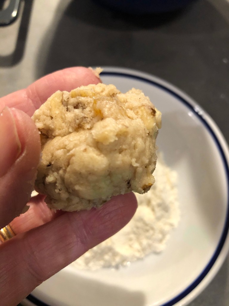 Prendo delle piccole porzioni di impasto, non deve essere una pallina liscia ma piuttosto irregolare
