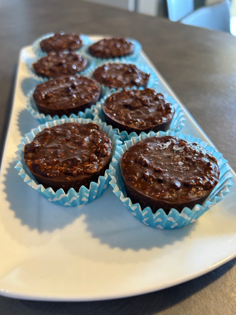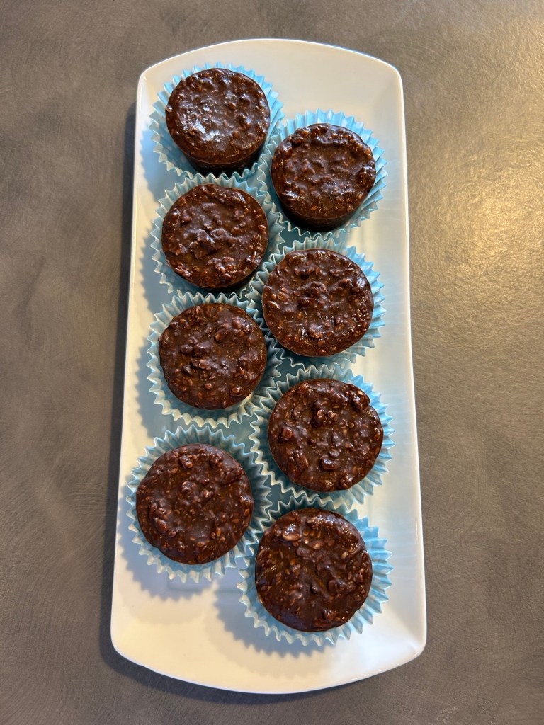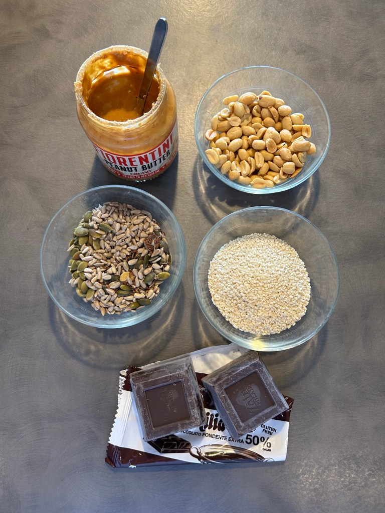 Non so come definirli, cioccolatini, dolcetti, sta di fatto che sono buonissimi, sono spariti in un baleno e tutti erano entusiasti, ho preso idea dal blog di “Diana & Alessio, che hanno preparato delle barrette ma al taglio un po’ si sbriciolavano quindi ho deciso di metterli in uno stampo in silicone e il risultato é fantastico, una mono porzione perfetta, adesso che é molto caldo si conservano in una scatola in frigorifero per quando si ha voglia di qualcosa di energetico ma senza zucchero