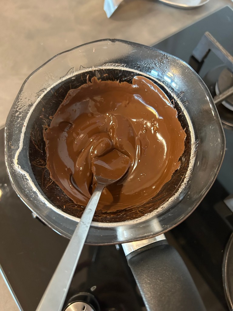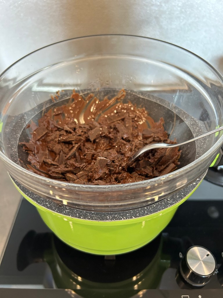Sciolgo il cioccolato a bagnomaria cioè mettendo il cioccolato in una ciotola sopra una pentola di acqua in leggera ebollizione oppure facendo molta attenzione a non bruciarlo si può utilizzare il microonde