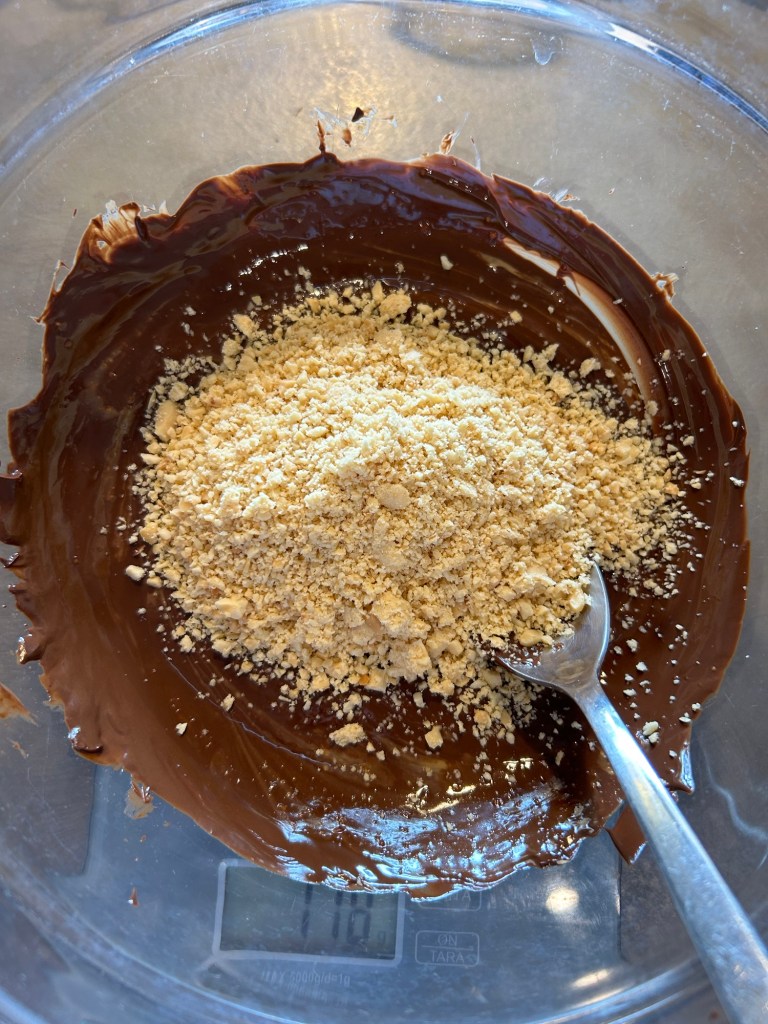 Quando sono completamente freddi e duri li giro, sciolgo a bagnomaria il cioccolato fondente che ho tritato a coltello