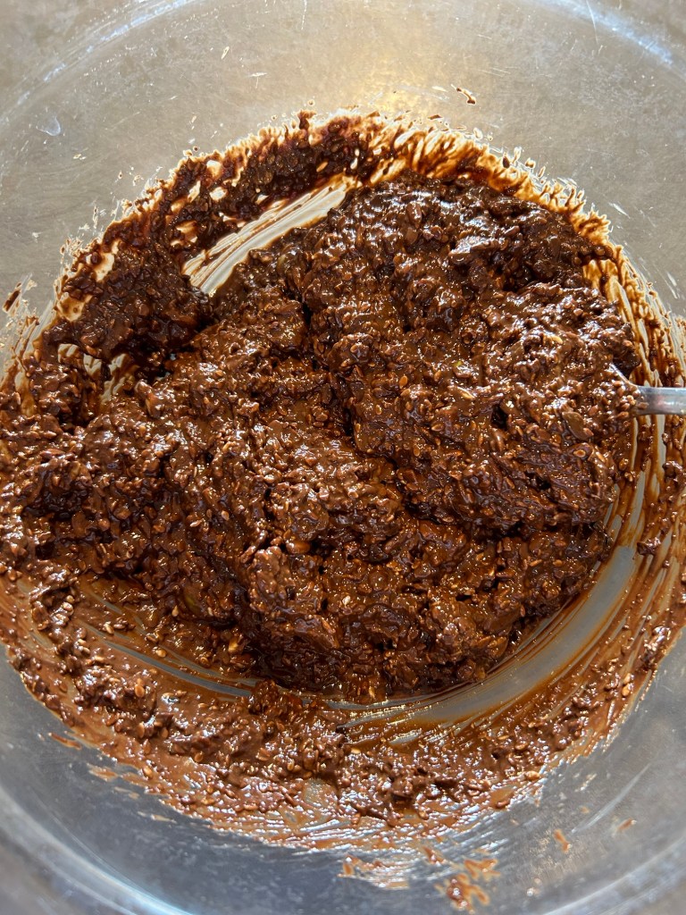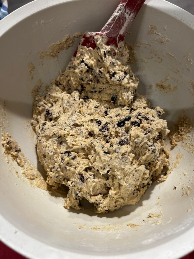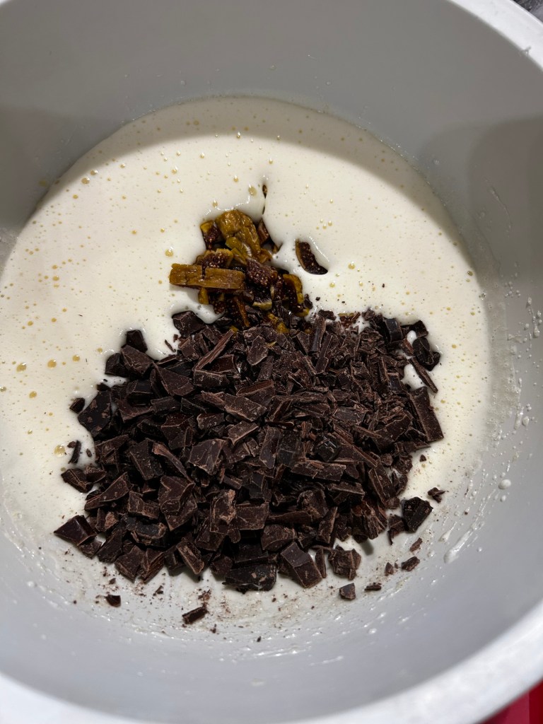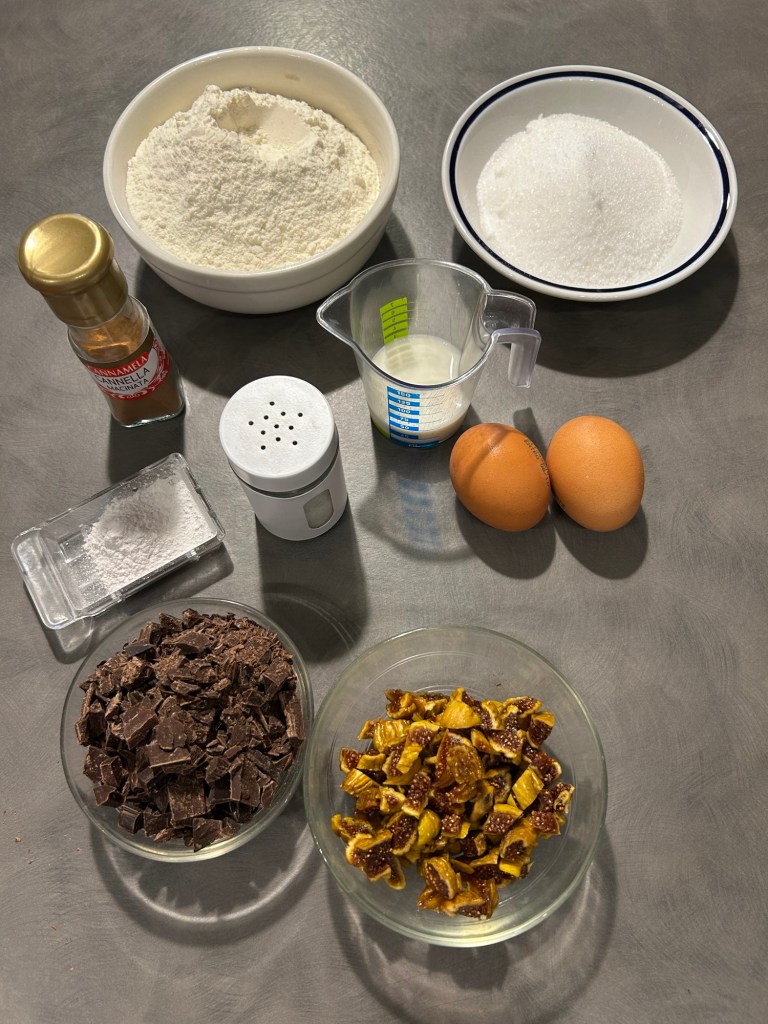 Aggiungo il cioccolato e i fichi e mescolo con una spatola