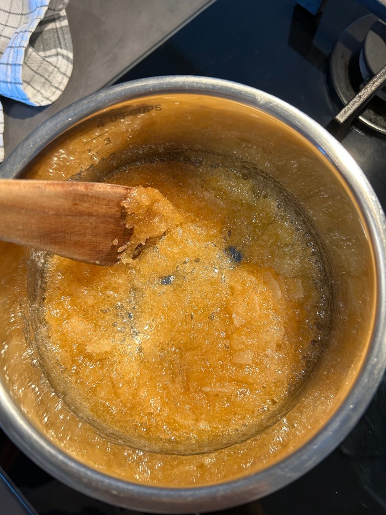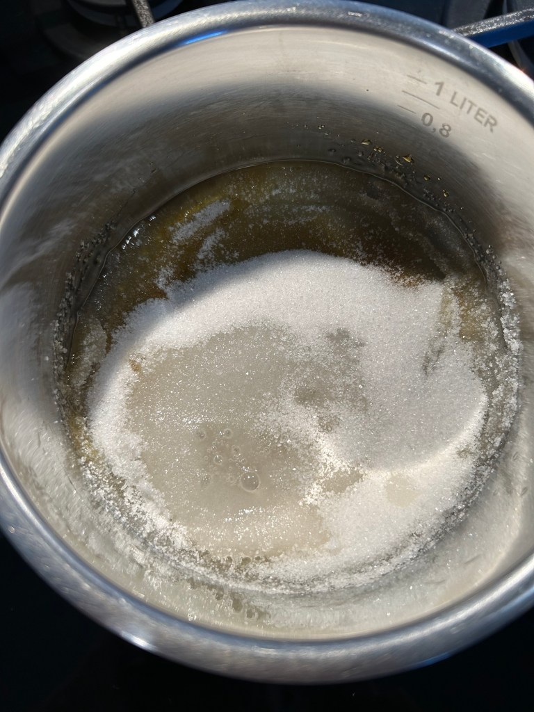 Lo zucchero inizia a sciogliersi a questo punto potete mescolare