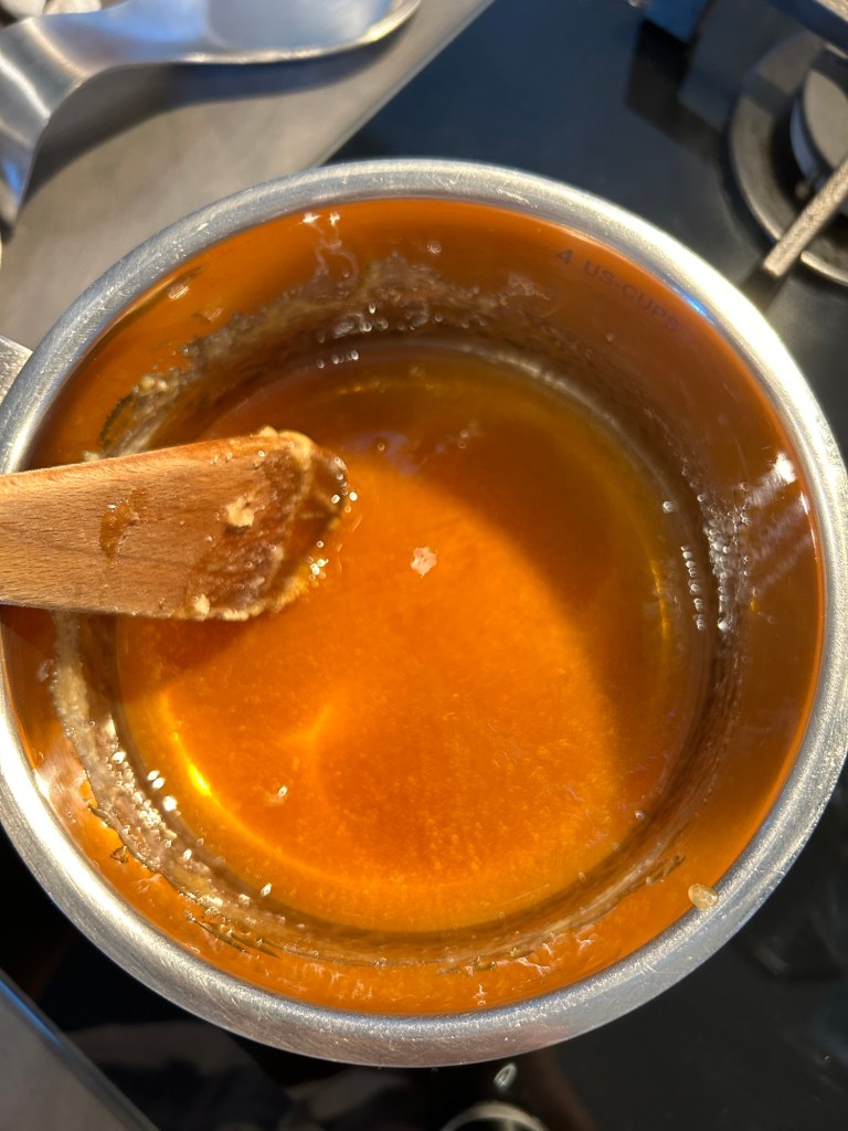Lo zucchero deve assumere un bel colore ambrato non troppo scuro altrimenti diventa amaro e dovrete buttare tutto
