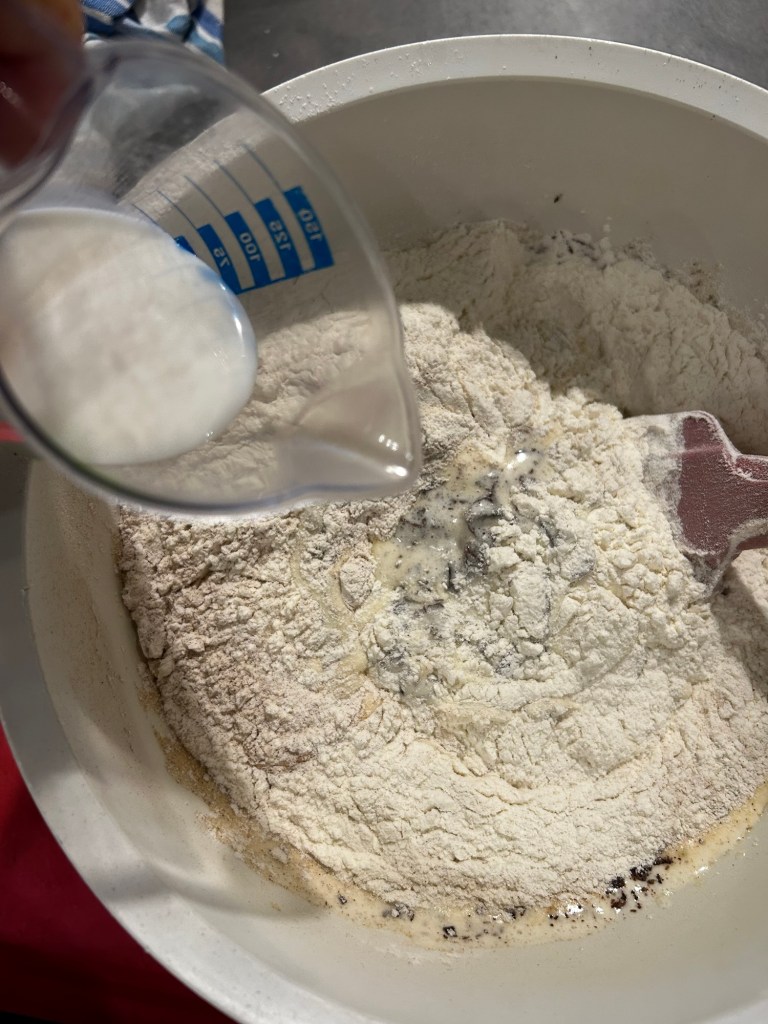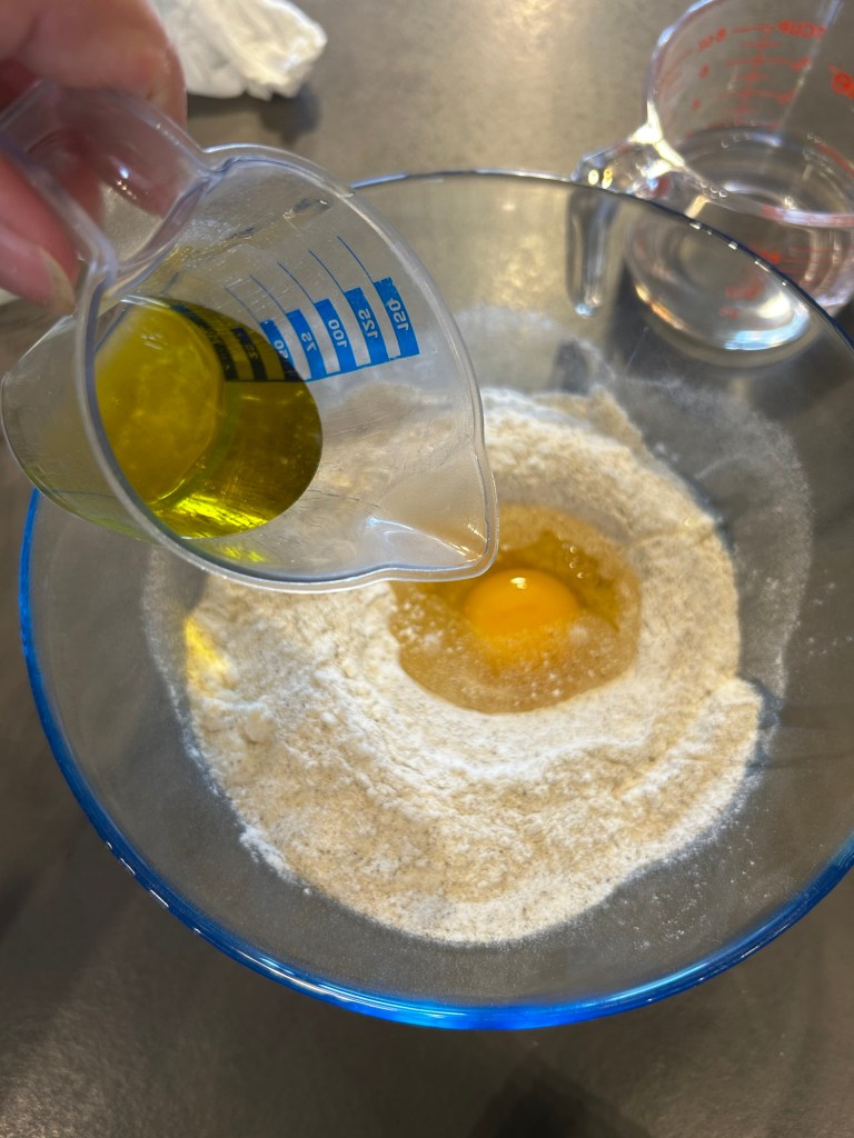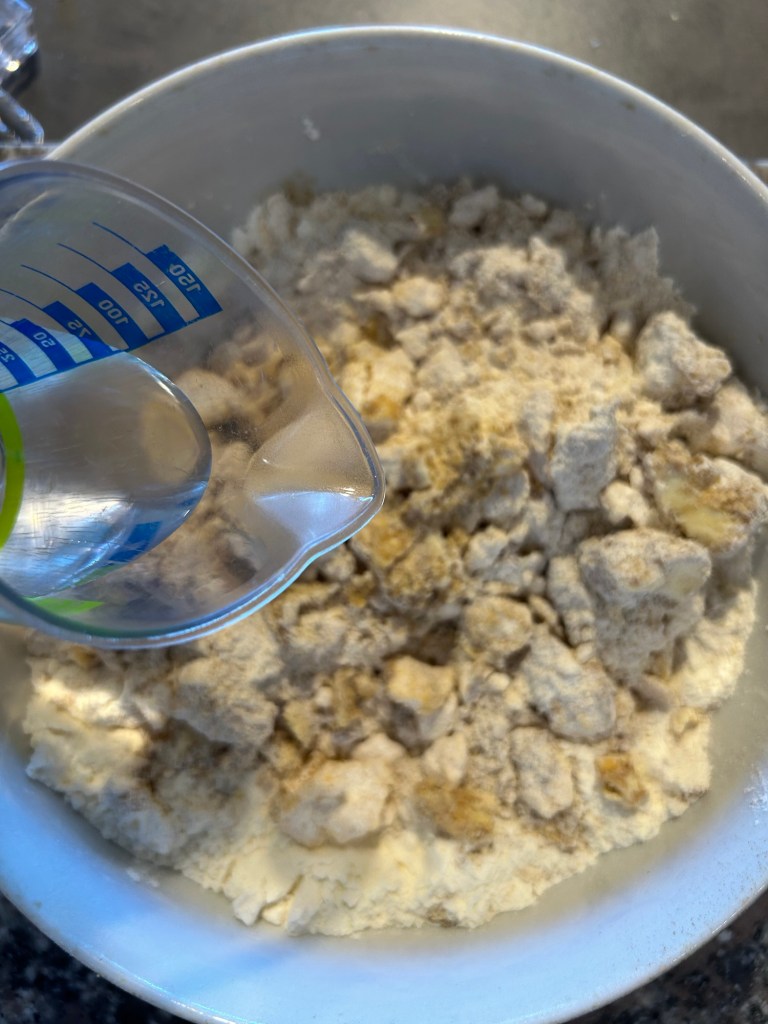 Inizio ad impastare con le mani e aggiungo l’acqua