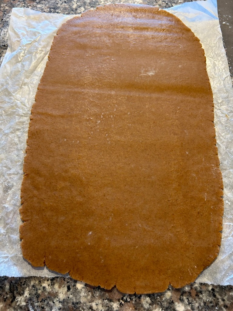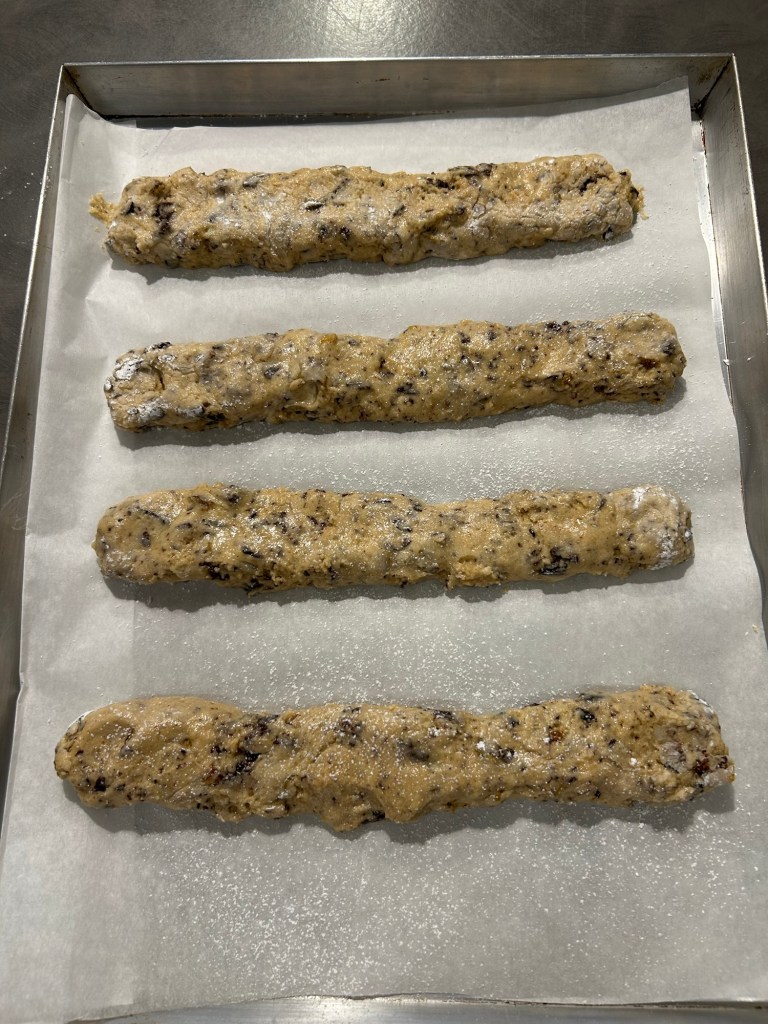 Arrotolo delicatamente formando un salame, mi aiuto con una spatola e lo appoggio su una teglia rivestita di carta forno cercando di dare una forma regolare, tengo i rotoli distanziati fra loro perché in cottura si allargano