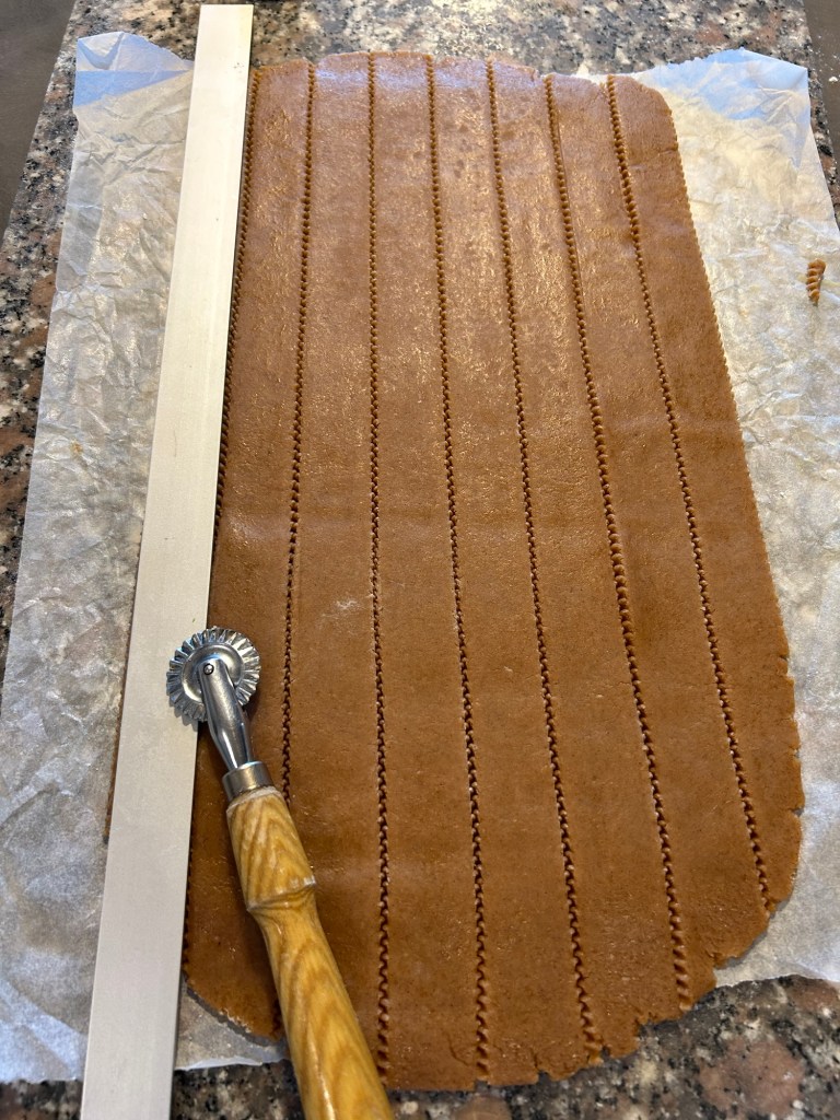 Taglio delle strisce larghe 2 cm, ho utilizzato una rotella