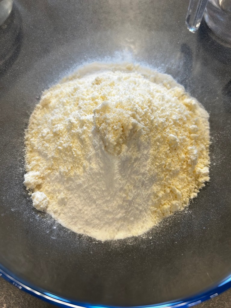 In una ciotola verso la farina, aggiungo la polvere di caramello