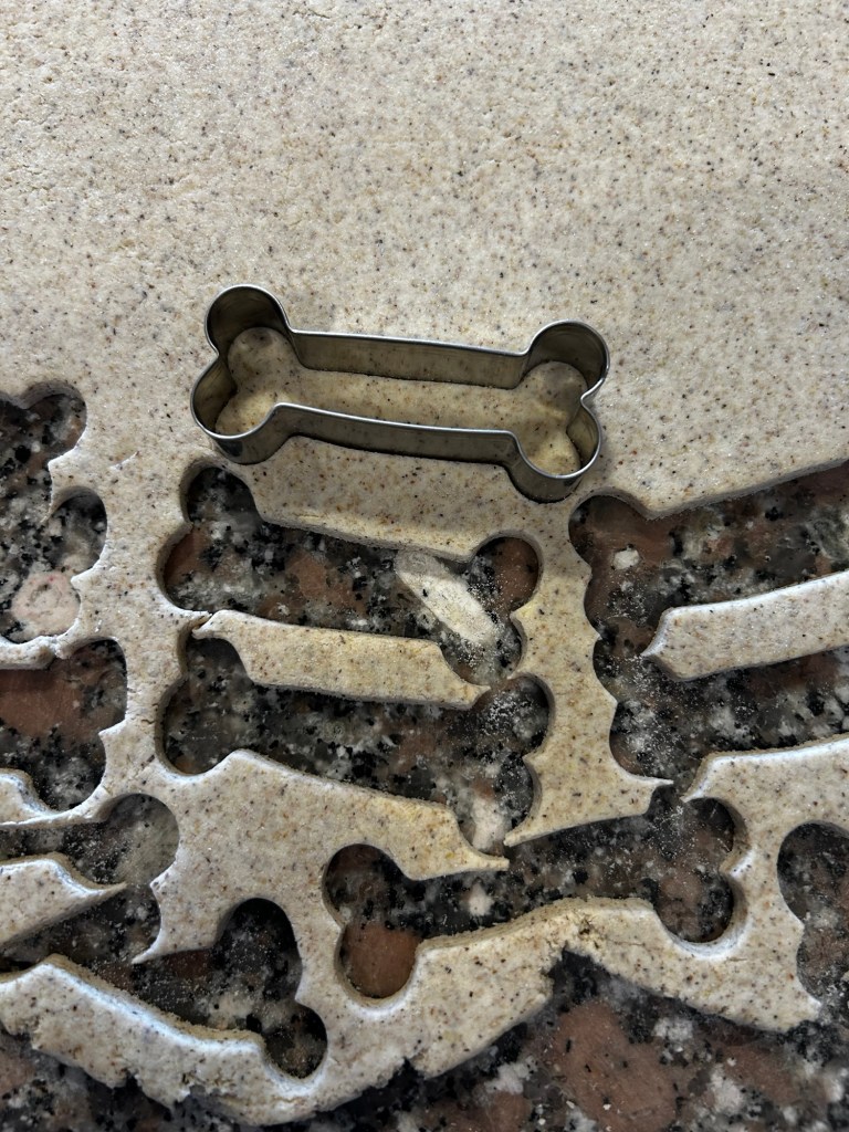 Intaglio i biscotti con un coppa pasta a forma di osso