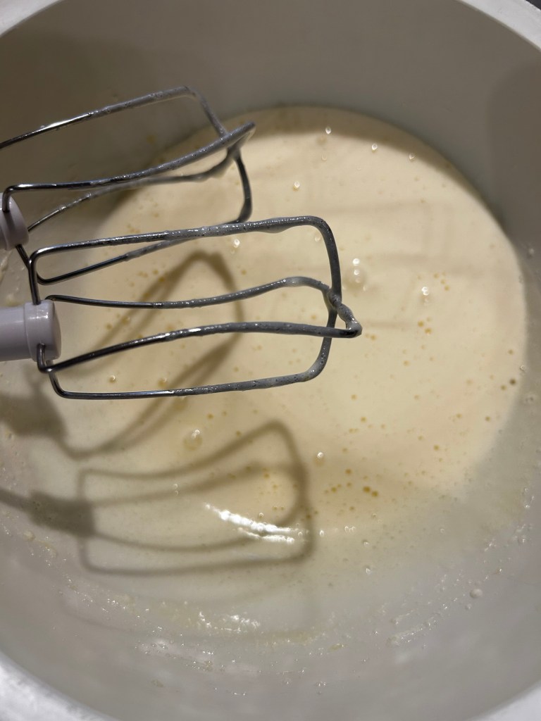 Monto con le fruste elettriche fino ad ottenere un composto gonfio e spumoso