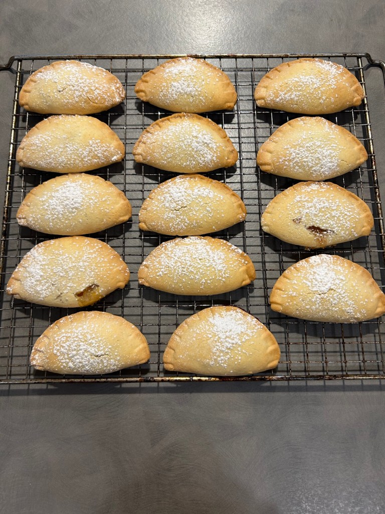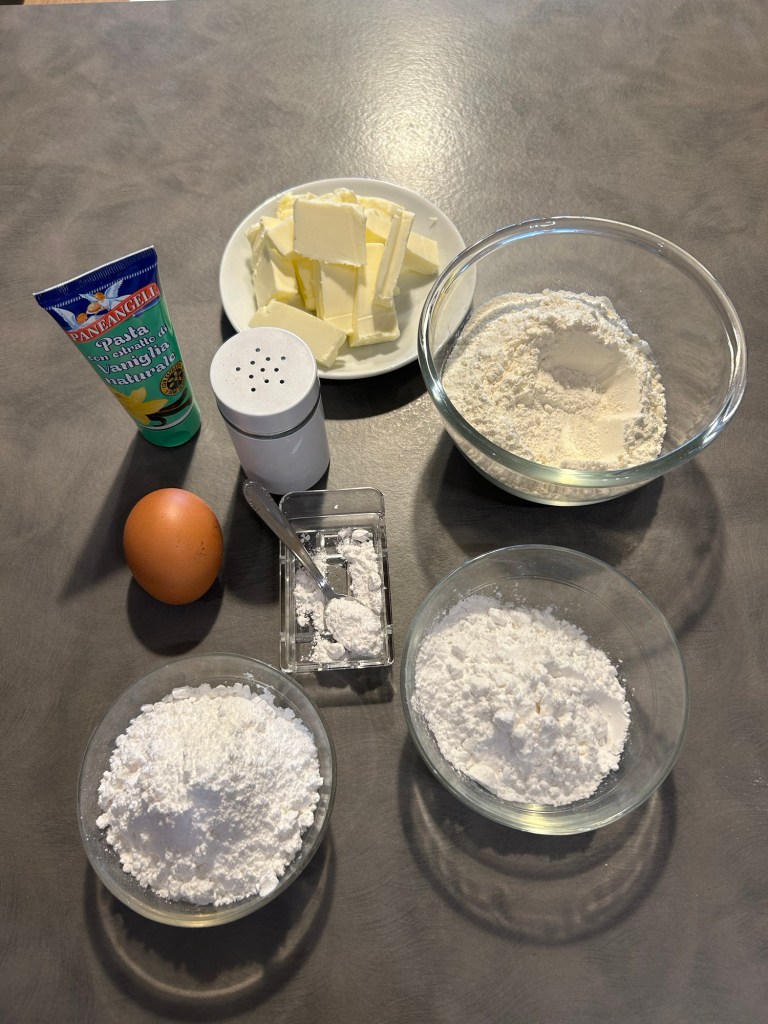Impasto il tutto e lascio riposare avvolta in pellicola per almeno mezz’ora ma potete prepararla anche il giorno prima, riprendo l’impasto, lo stendo in uno spessore di 4 mm e fodero gli stampini, bucherello bene la base e cuocio a 180 gradi per circa 15/20 minuti, io ho utilizzato il forno ventilato, controllate, devono risultare dorate, quindi le lascio raffreddare prima di toglierle dagli stampi