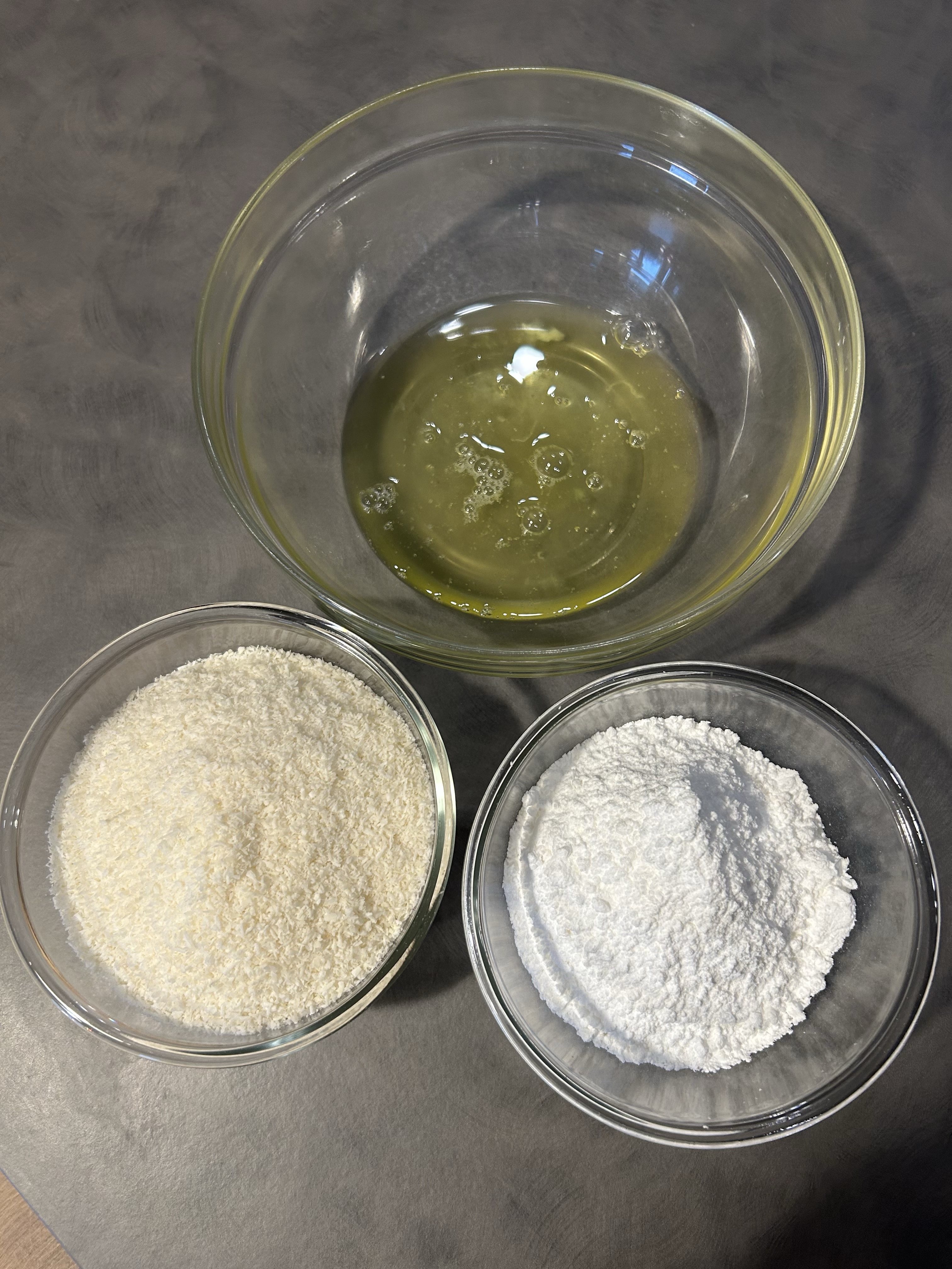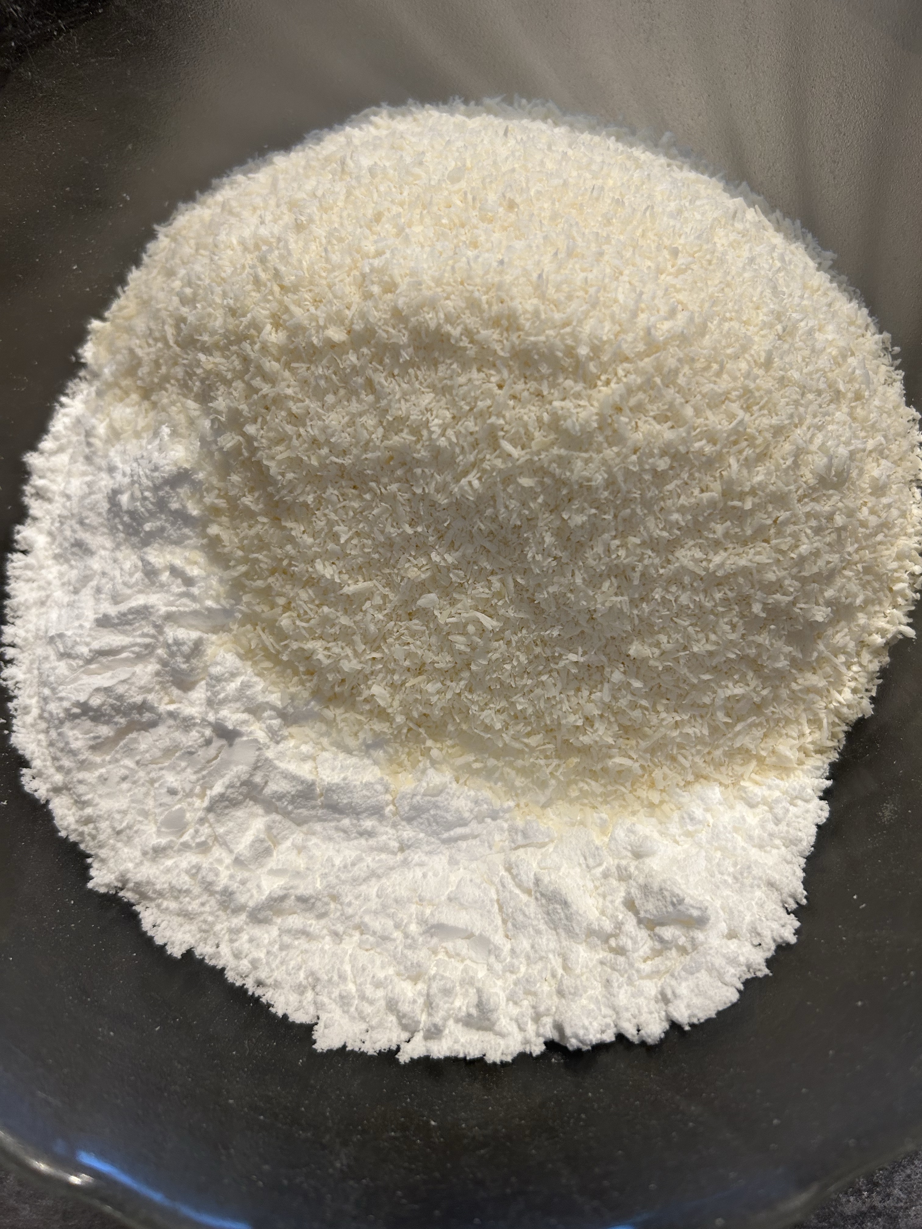 Mescolo il cocco rapé e lo zucchero a velo