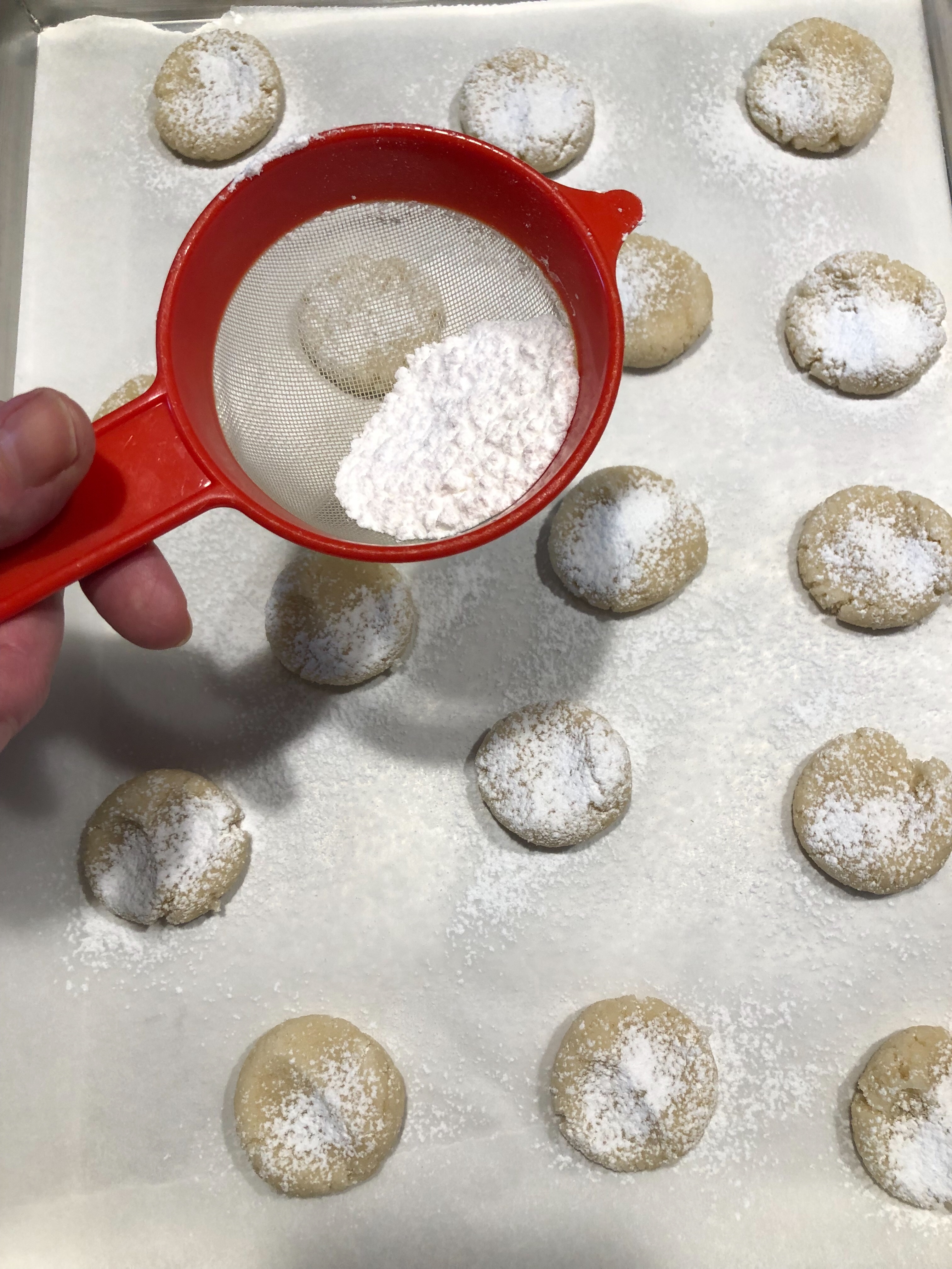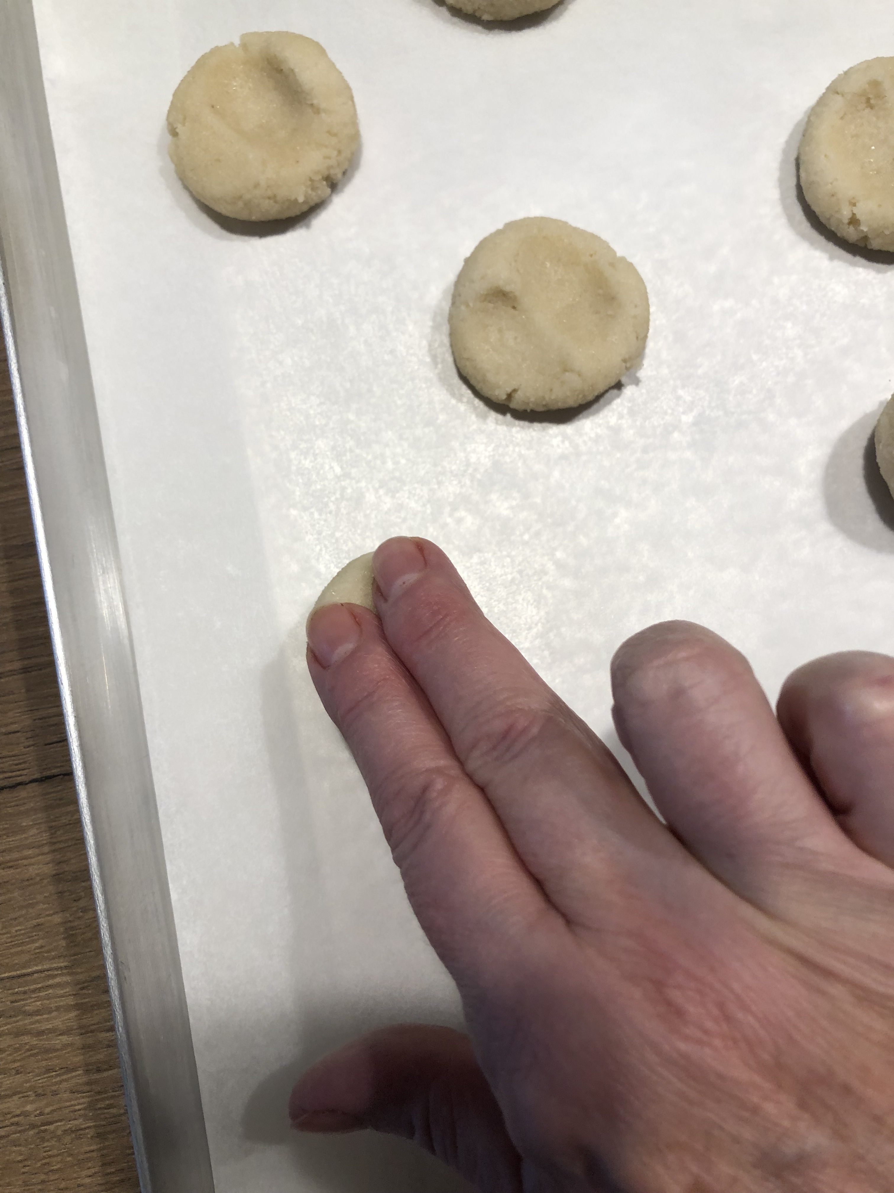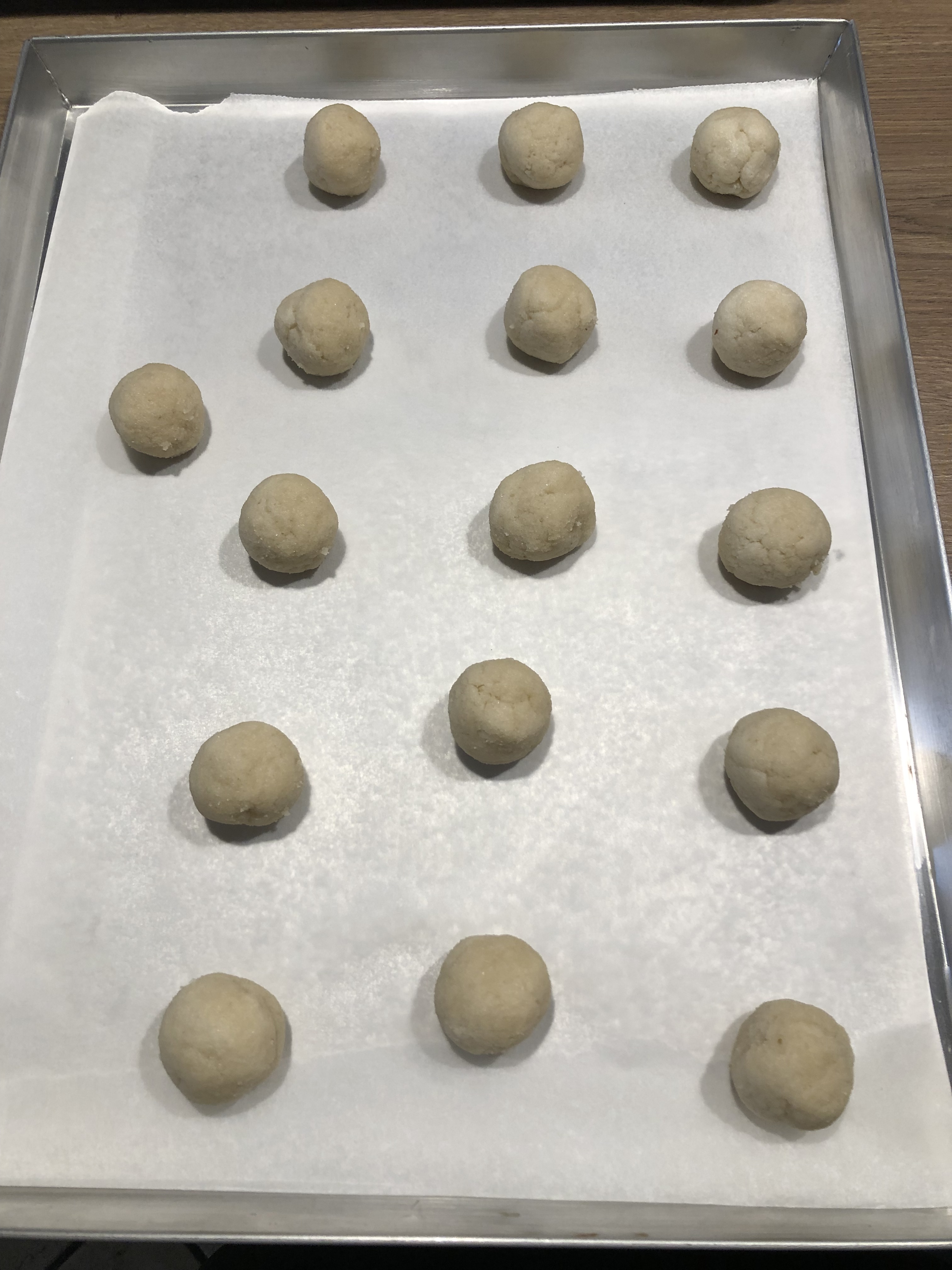 Formo tante palline del peso di circa 20 grammi e le dispongo su di una placca ricoperta di carta forno