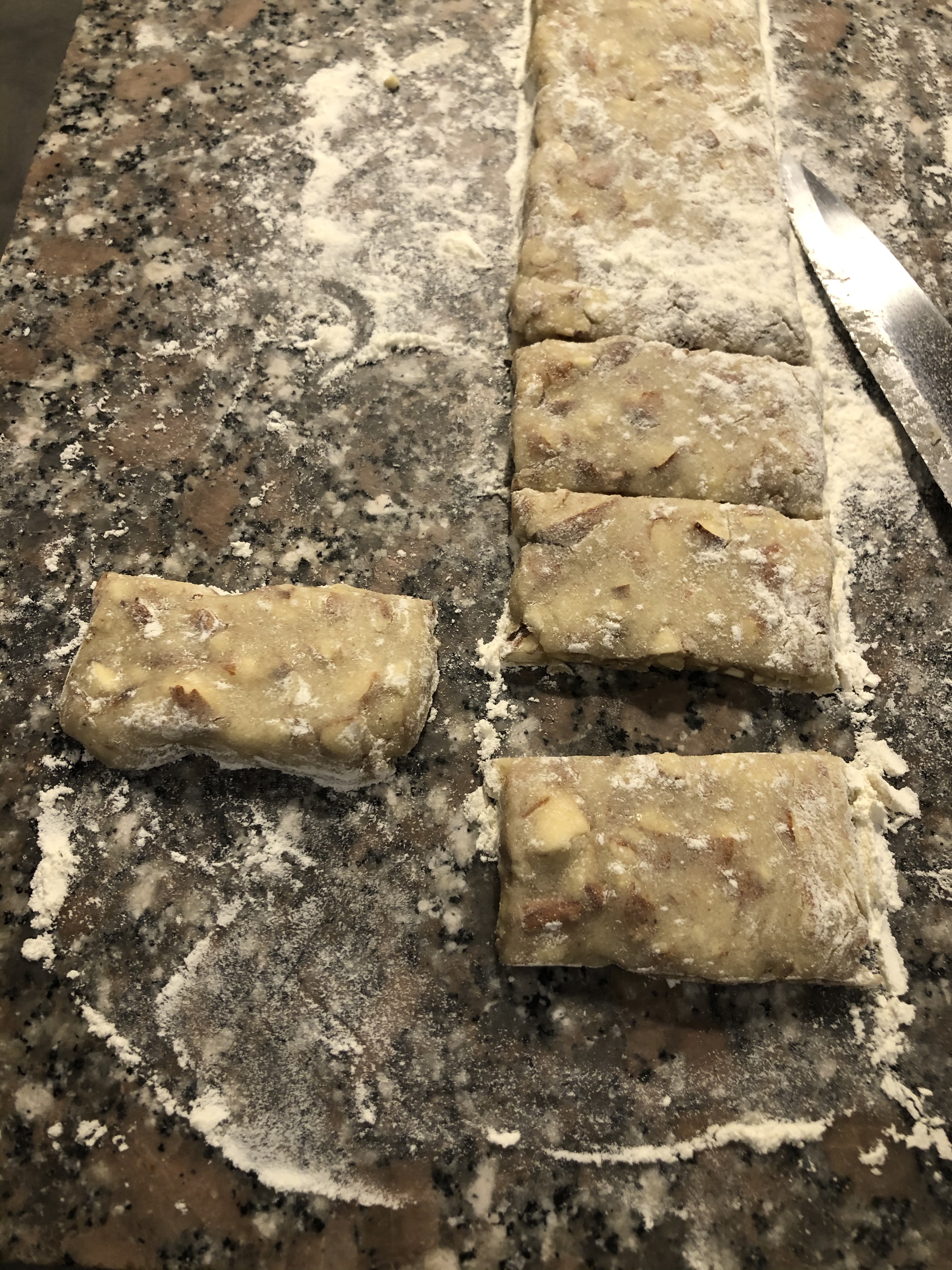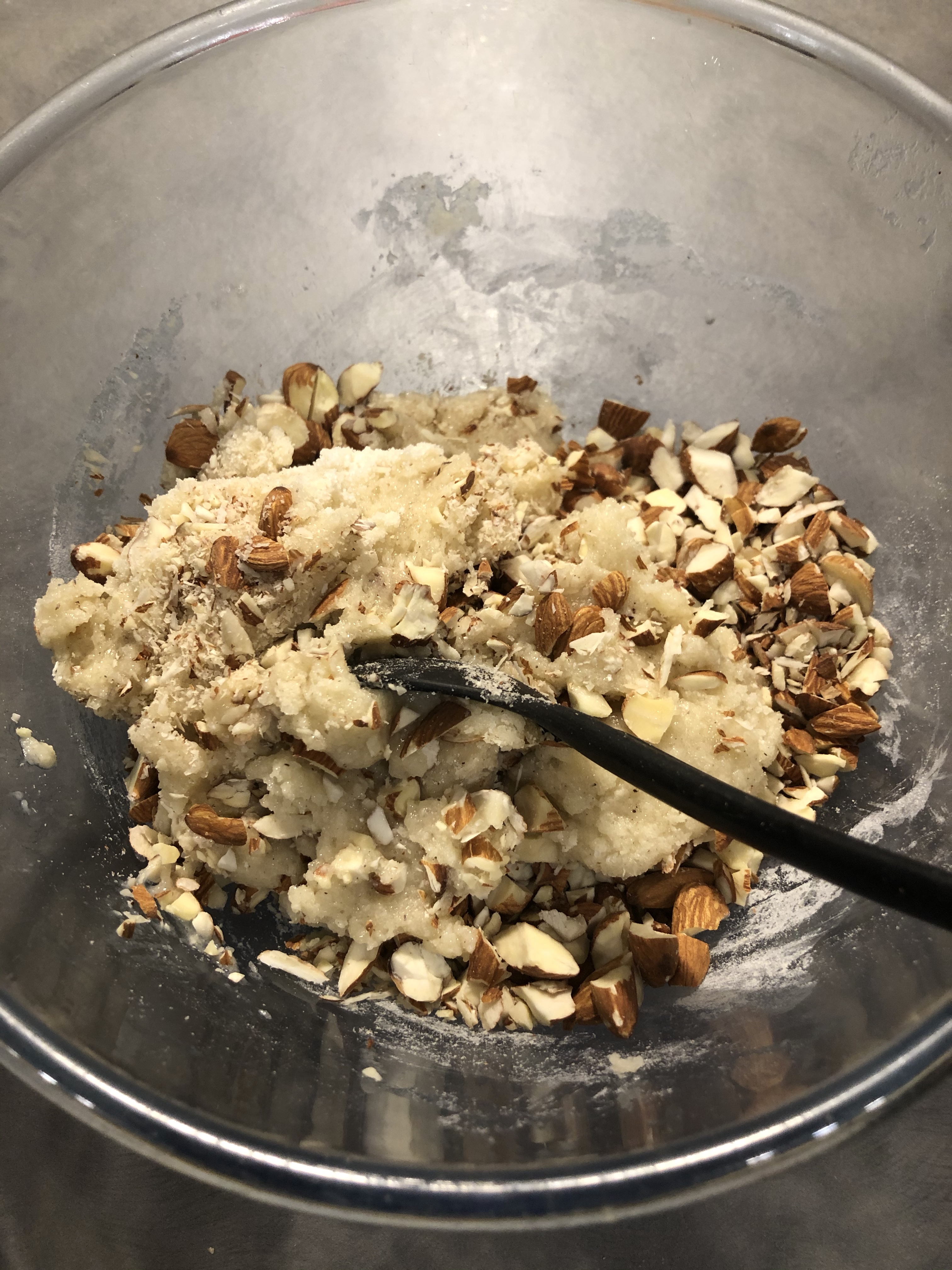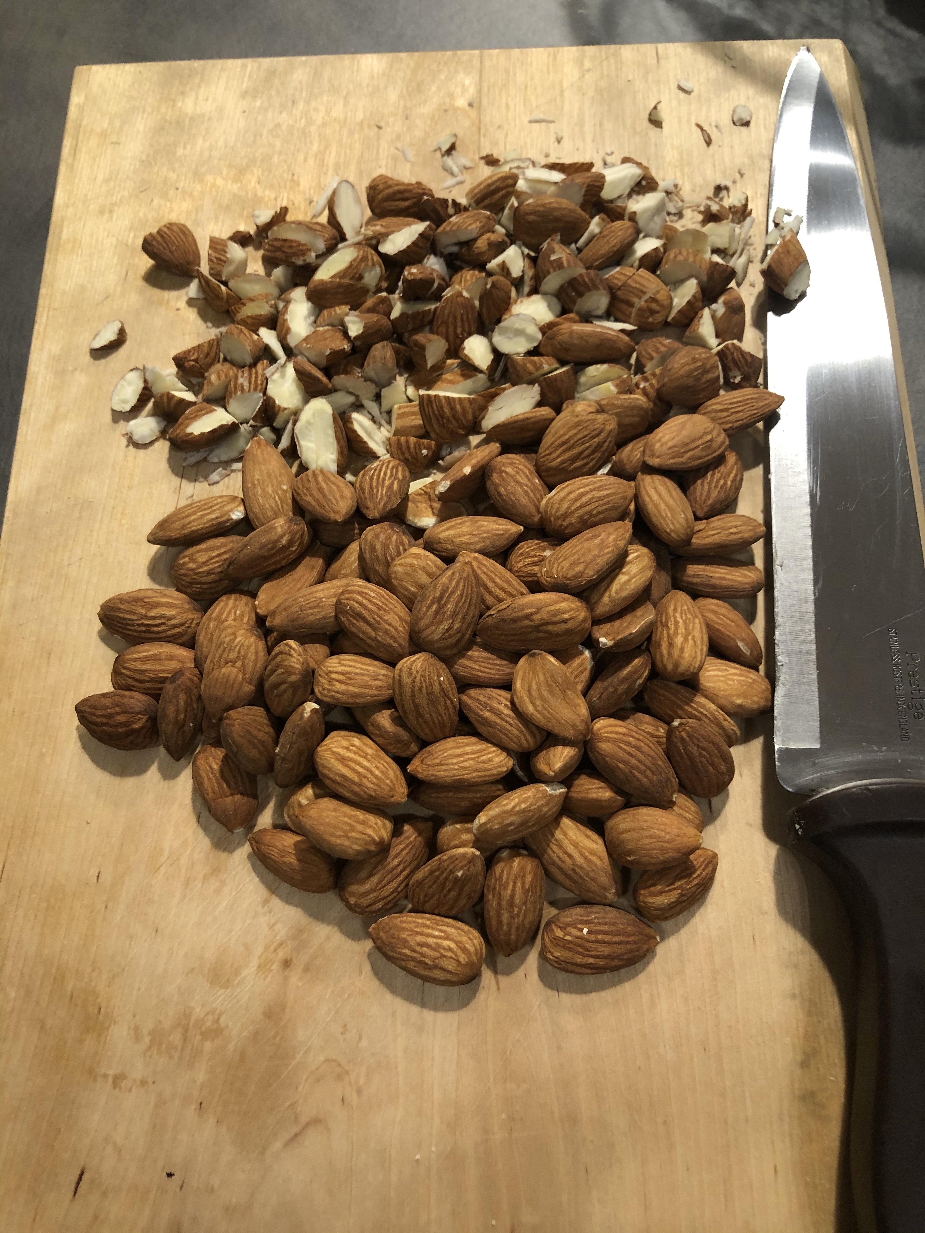 Trito a coltello le mandorle lasciandole piuttosto grosse