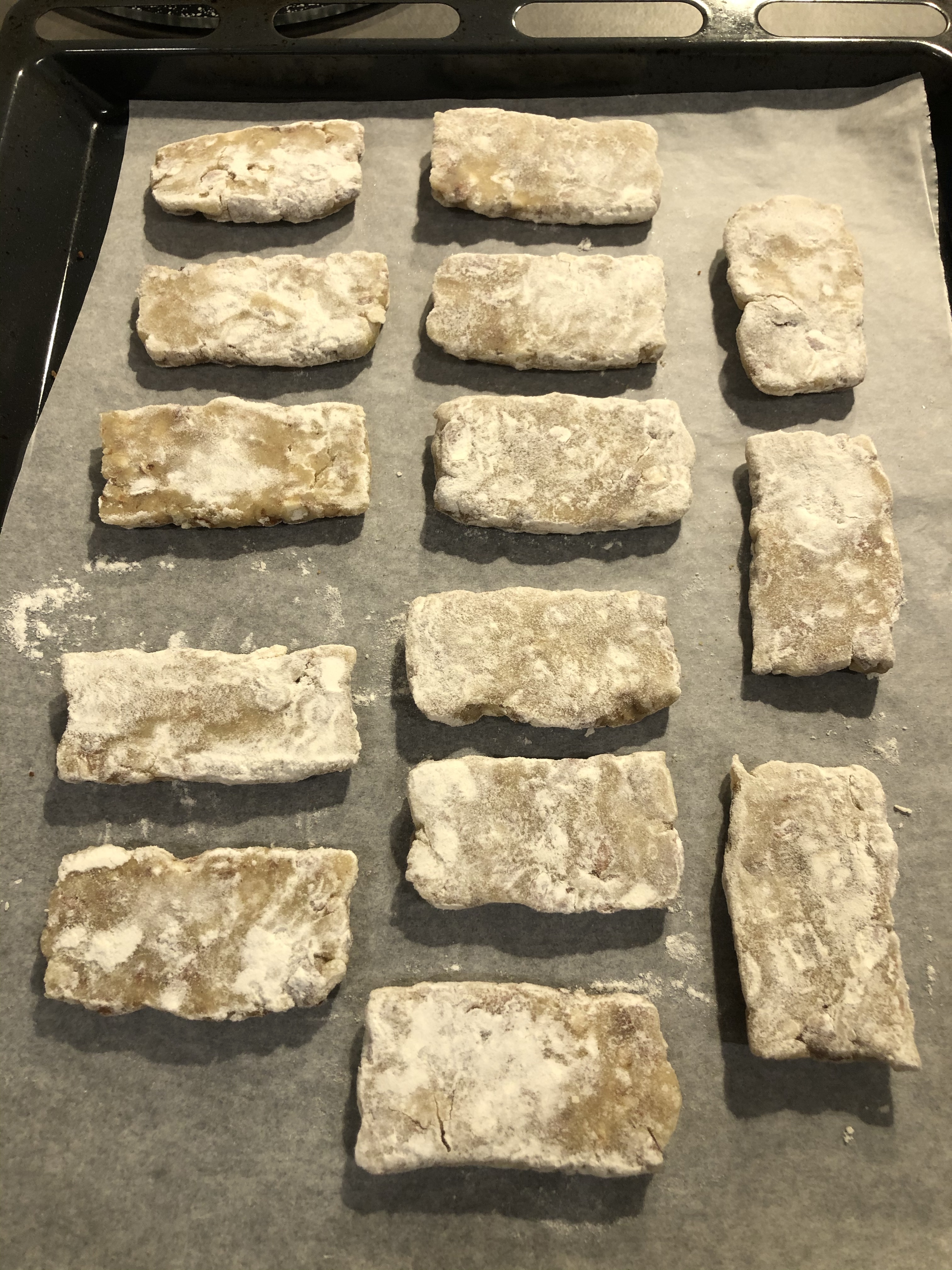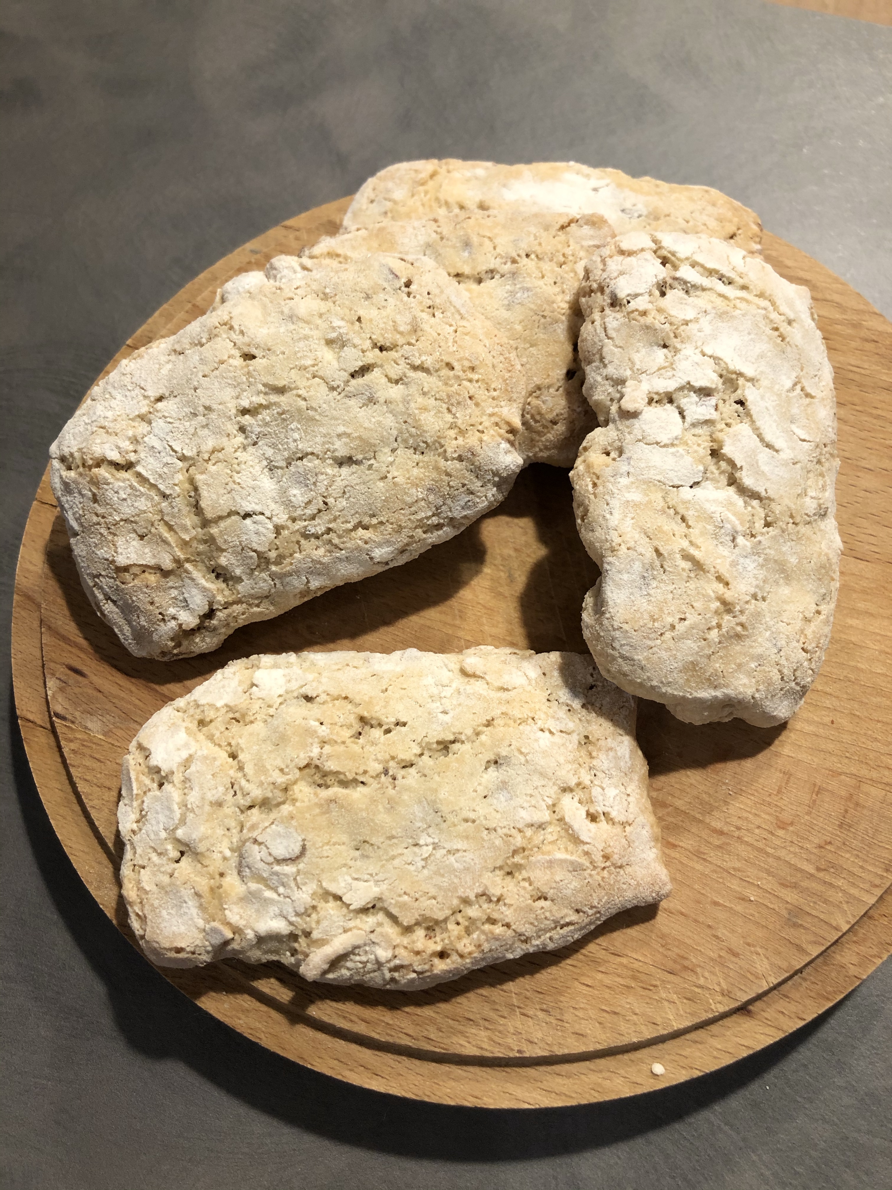 Una vecchia ricetta che ho trovato sul quaderno di ricette della mia mamma, gli era stata data da una nostra cara amica, Franca che purtroppo non c’è più, quando veniva a trovarci portava questo enorme vassoio di biscotti che noi adoravamo, la mia mamma li conservava in una grande scatola di latta, ma purtroppo duravano pochissimo, croccanti e saporiti, un po’ spaccadenti ma fantastici, devo dire che sono risultati proprio come i suoi