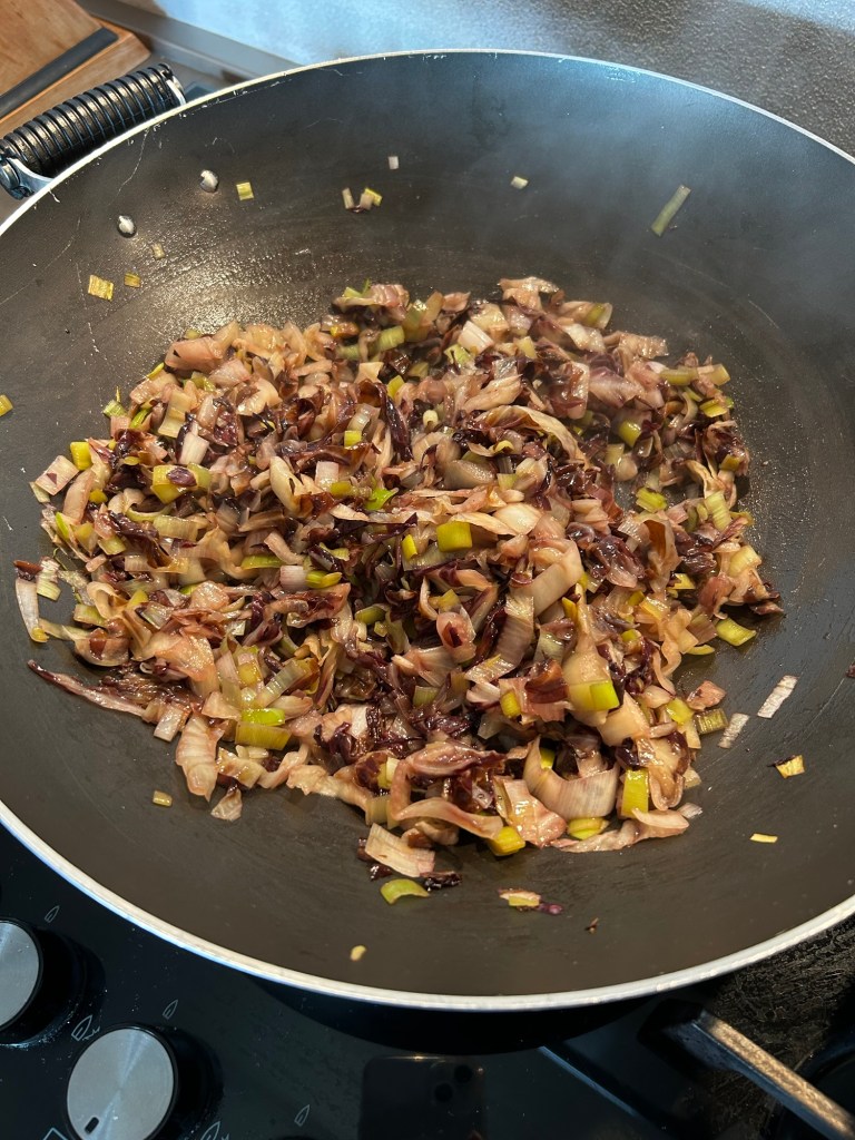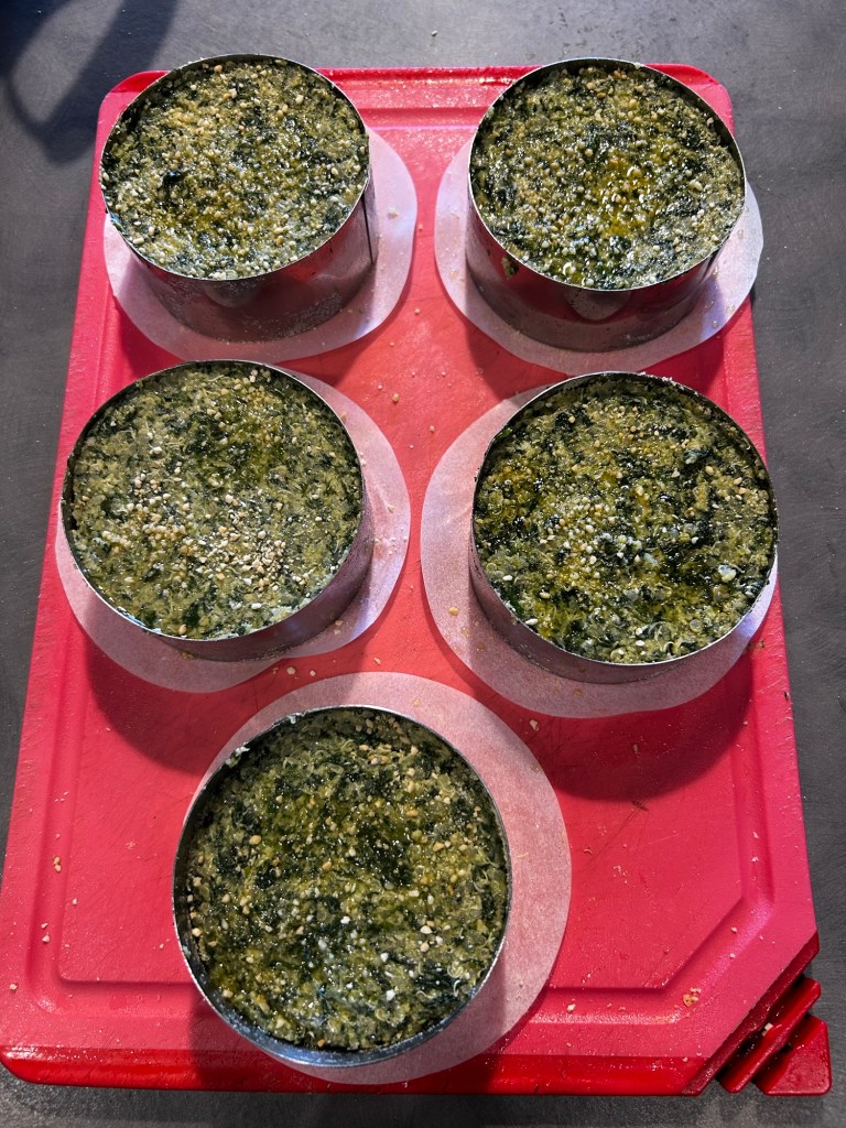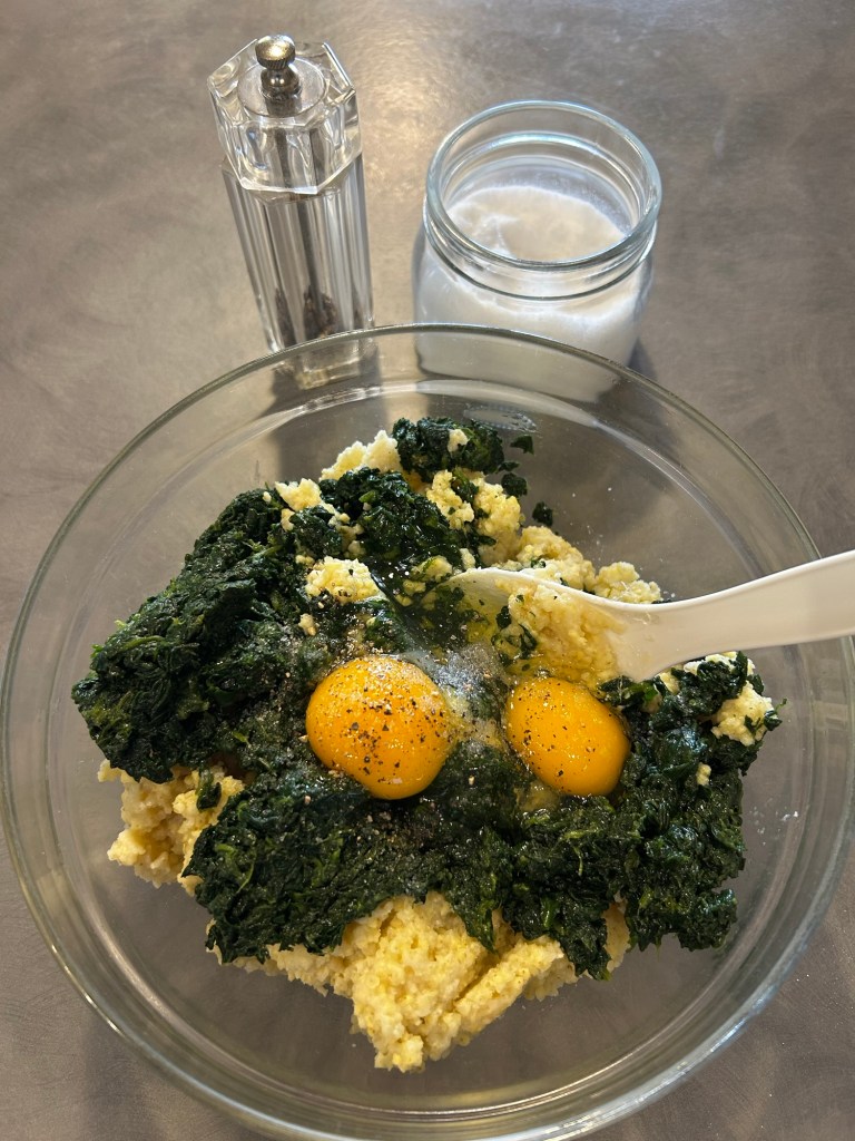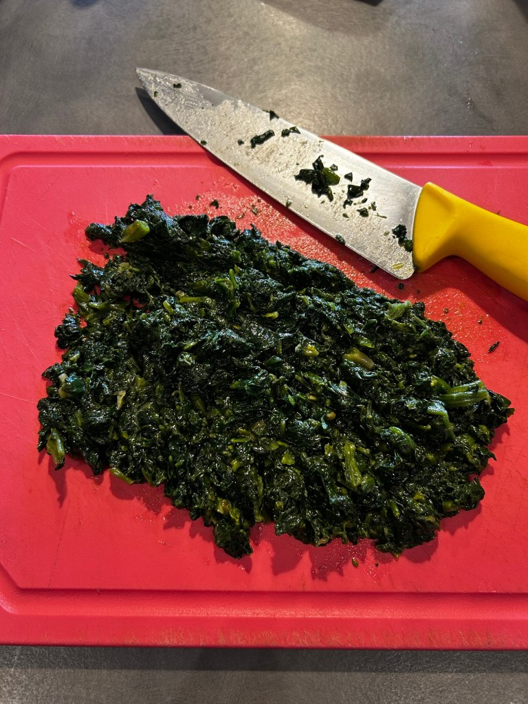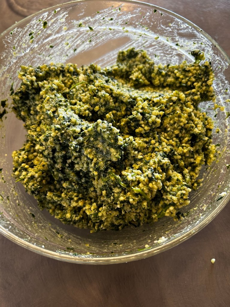 Lascio raffreddare la quinoa, trito gli spinaci che avevo precedentemente cotto in padella senza acqua con un filo di olio, sale pepe, un trito di prezzemolo uno spicchio di aglio, basteranno pochi minuti se rilasciano liquido li strizzo