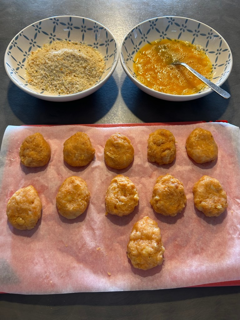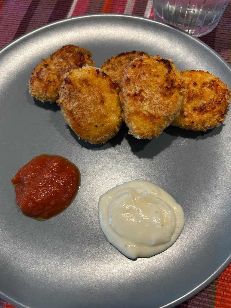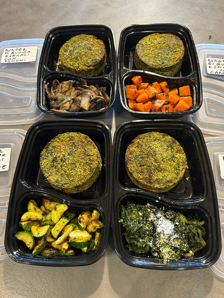 Cuocio a 180 gradi per circa 20 minuti finché sono dorati, quando sono freddi li trasferisco nelle scatole o nel piatto e aggiungo i contorni, poi metto le etichette e congelo