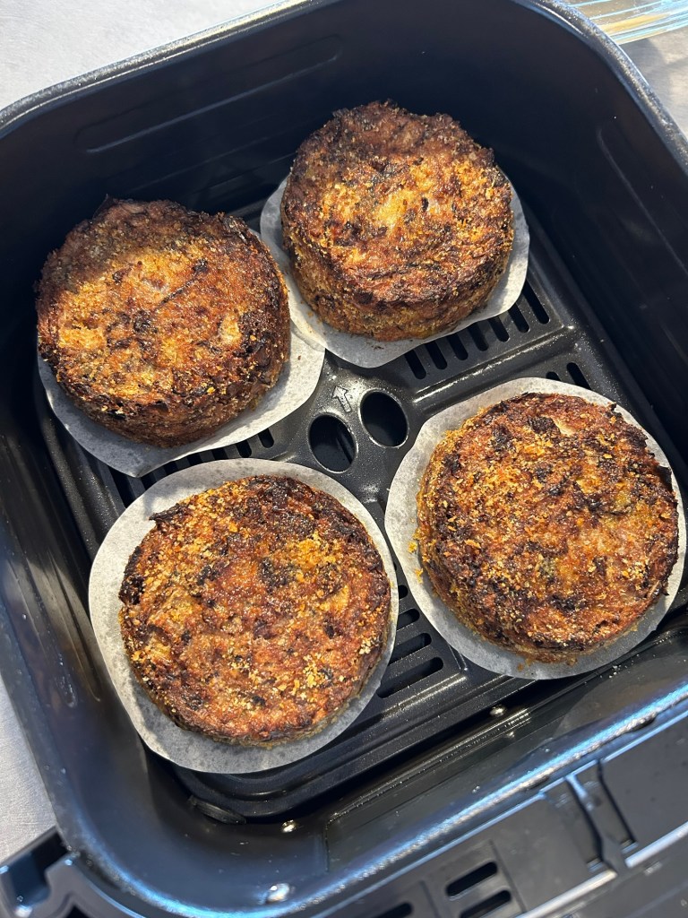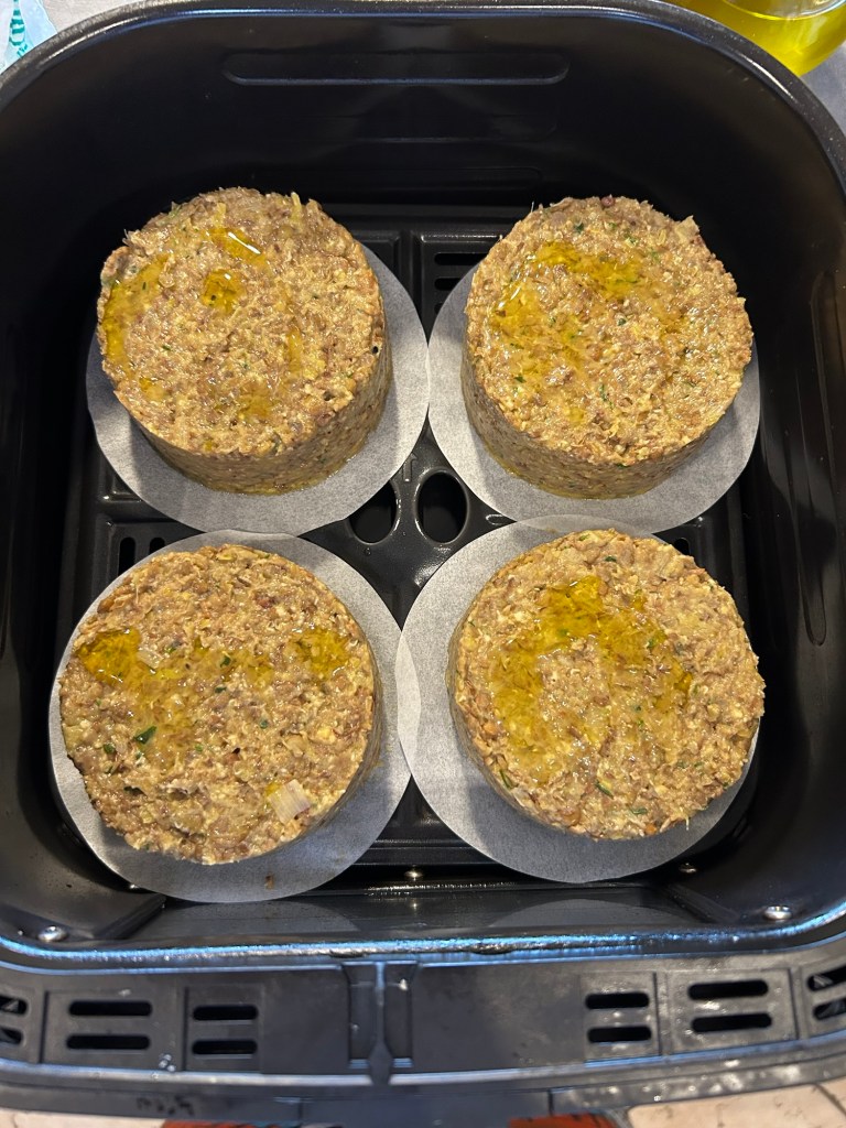Continua la mia serie dei burger senza glutine per il pranzo di lavoro di mio figlio, comode, si scaldano a microonde accompagnate da vari contorni, ma potete consumarli anche subito, cotti in friggitrice ad aria, nel forno classico o in padella