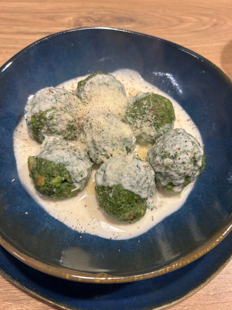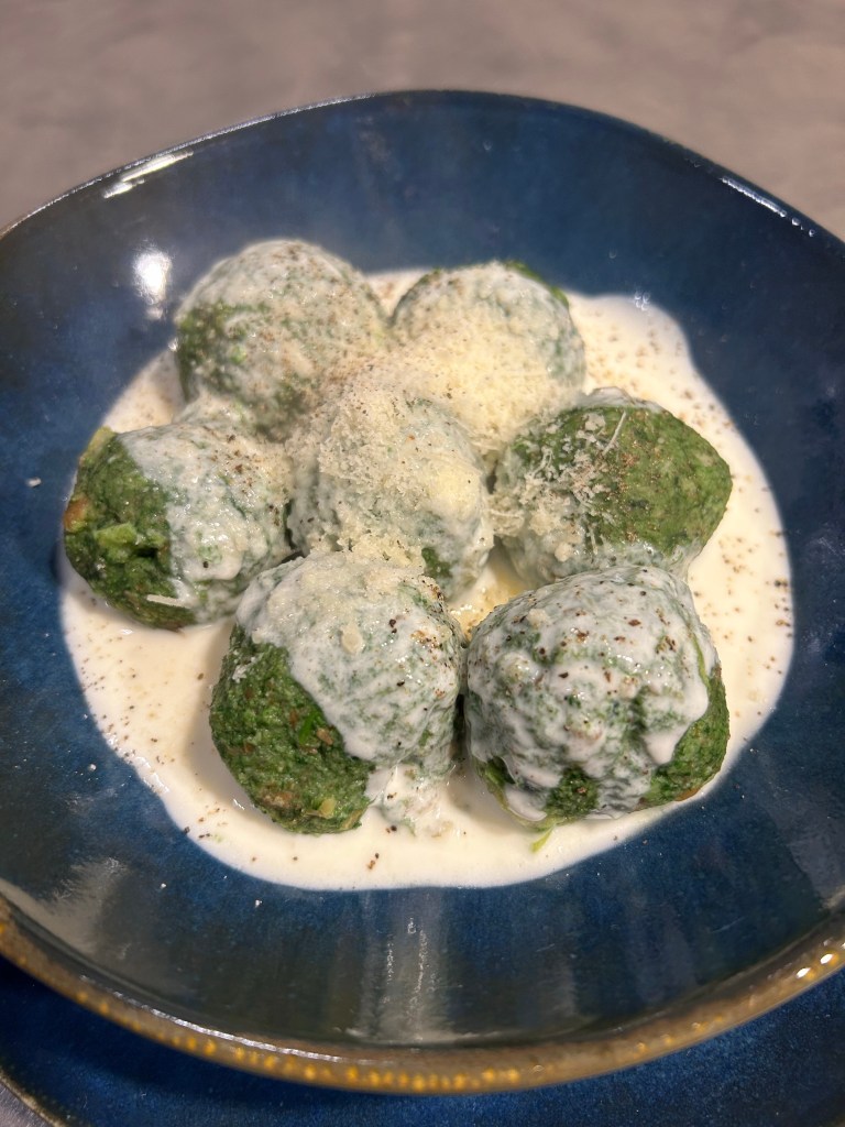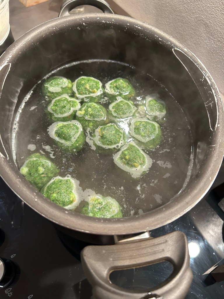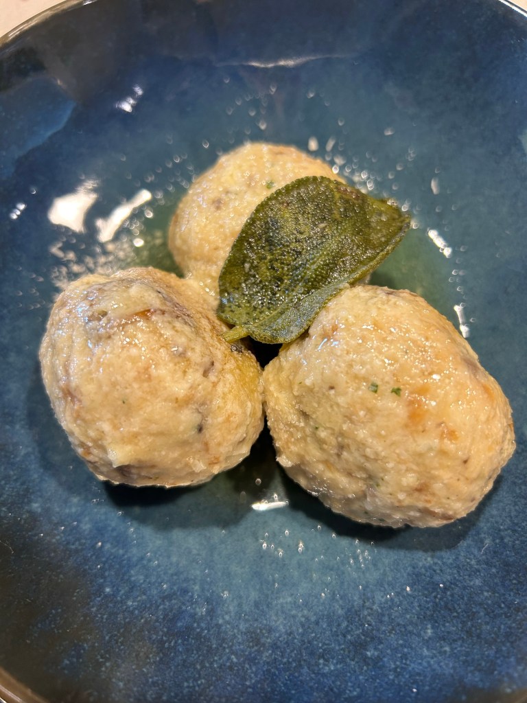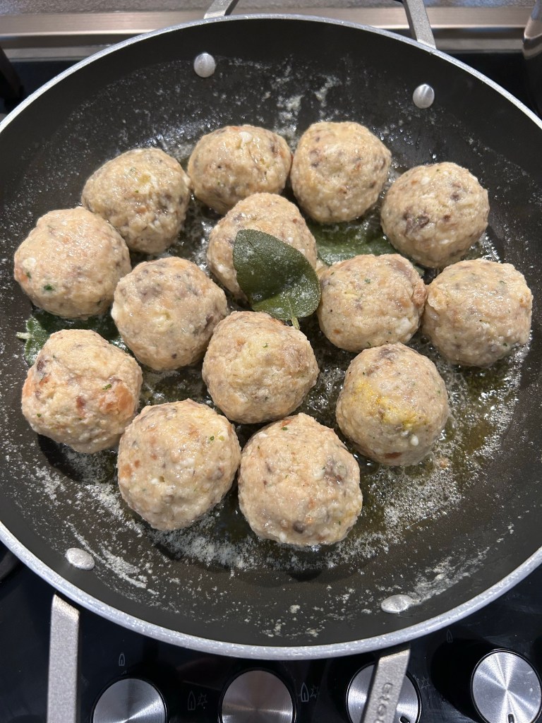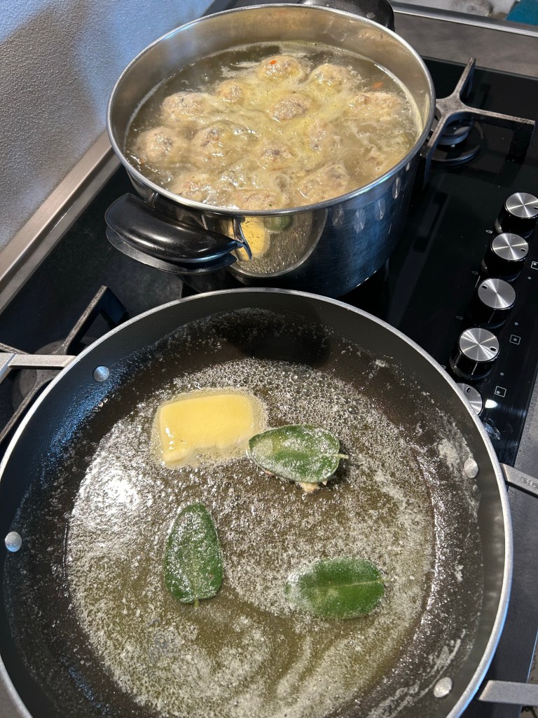 Quando i canederli sono cotti li scolo e li passo leggermente nel burro e salvia, potete aggiungere un cucchiaio di brodo di cottura