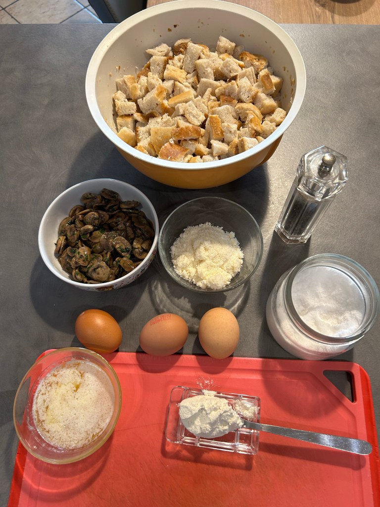 Buonissimi questi canederli ai funghi, ricetta di recupero, con pane raffermo e funghi Champignon avanzati da una precedente ricetta, ma potete utilizzare anche dei funghi misti congelati, potete sciogliere di prepararli al burro e salvia oppure in brodo vegetale, si possono anche congelare, scrivo per 4/6 persone, dipende da quanti ne mangiate, i miei ospiti hanno fatto il bis