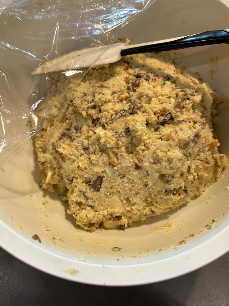 A questo punto impasto con le mani, deve risultare morbido ma non troppo molle, se lo fosse potete aggiungere un po’ di pane grattugiato, al contrario un goccio di latte, copro e lascio riposare mezz’ora