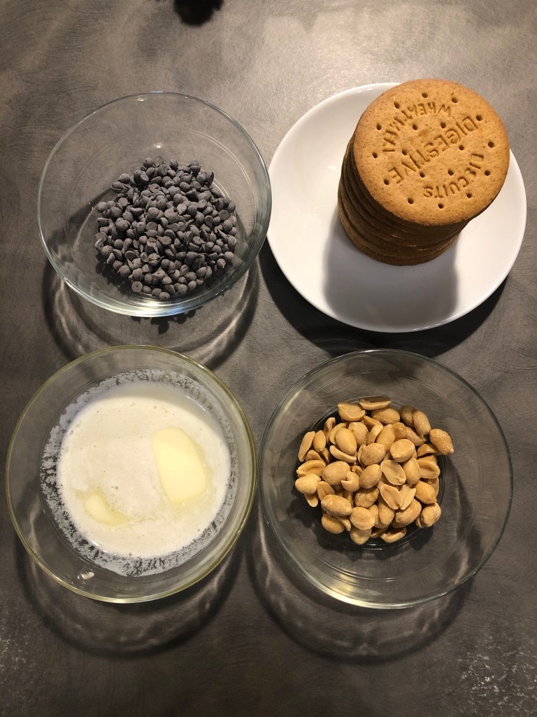 Nel mixer metto i biscotti, le arachidi, il cioccolato
