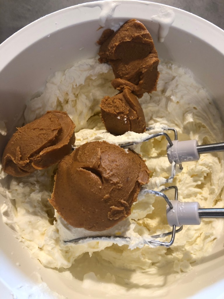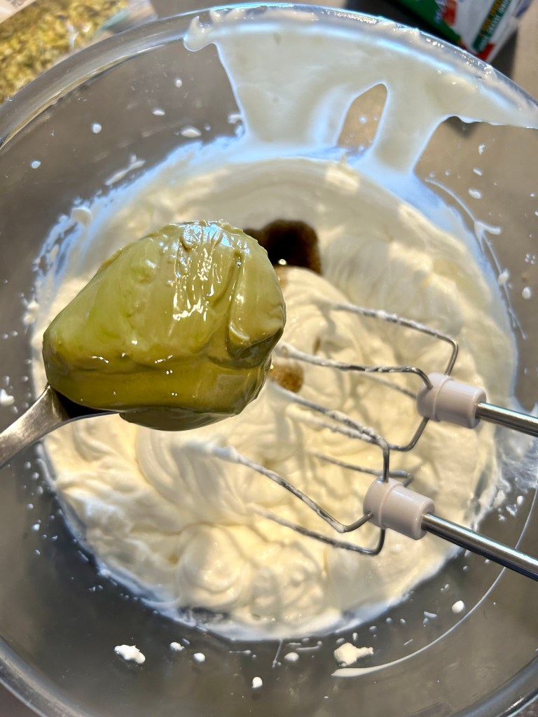 La aggiungo alla crema montata mescolando con una spatola dal basso verso l’alto