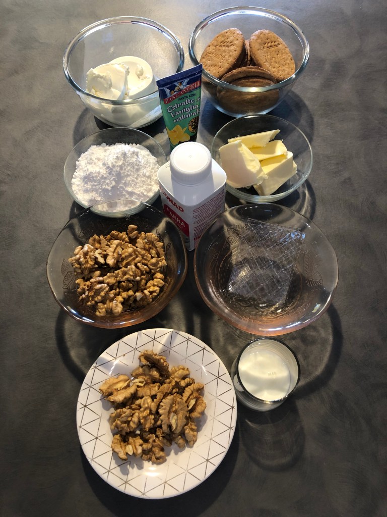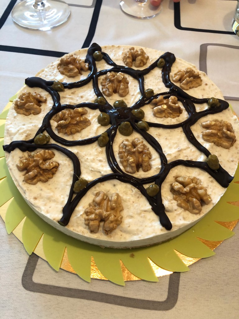 Decoro con i gherigli di noce e ripongo in frigorifero, se volete potete congelarla e finire la decorazione all”occorrenza