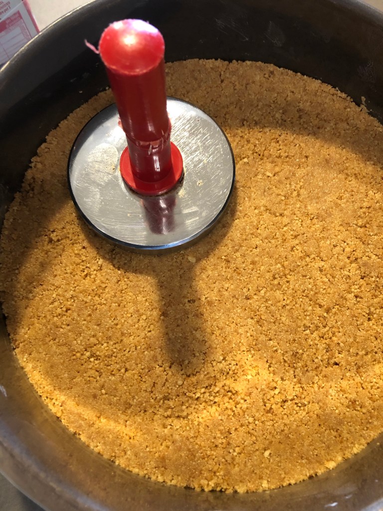 Livello bene e mi aiuto con un batticarne pressando leggermente, lascio la tortiera in frigorifero