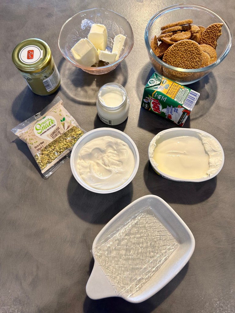 Rivesto il fondo di una tortiera con carta forno e con una striscia di acetato i bordi, se non l’avete utilizzate una striscia di carta forno, verso il composto di biscotti in modo uniforme e presso bene, io mi aiuto con un batticarne, quindi metto la tortiera in frigorifero